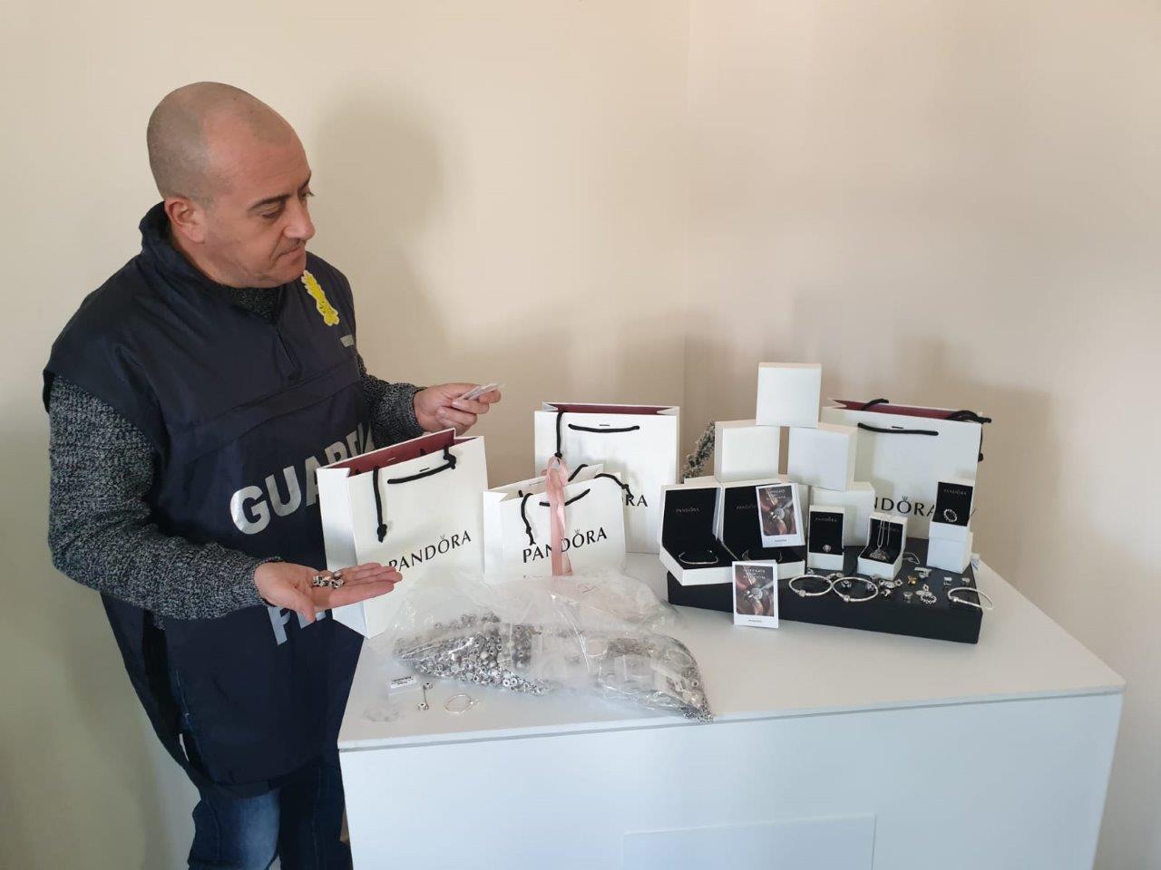 Marcianise. La Guardia di Finanza di Marcianise, nell’ambito dell’attività di controllo economico del territorio finalizzata all’individuazione di laboratori e opifici abusivi, nella giornata di ieri ha scoperto un magazzino occulto ubicato a Marcianise e utilizzato per lo stoccaggio di gioielli contraffatti a marchio “PANDORA”, venduti illegalmente da un commerciante operante all’interno del noto centro orafo “Il Tarì”. Sequestrati 2.860 monili riportanti i disegni industriali e/o il logo contraffatto, oltre a quasi 900 articoli utilizzati per il loro confezionamento.