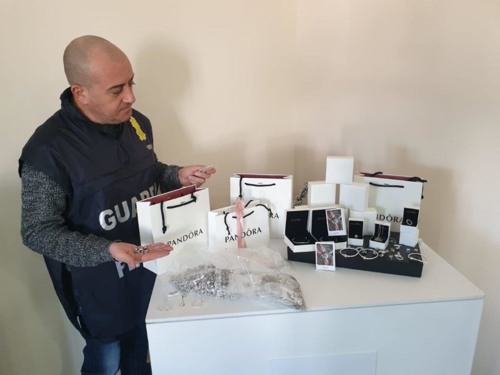 Marcianise. La Guardia di Finanza di Marcianise, nell’ambito dell’attività di controllo economico del territorio finalizzata all’individuazione di laboratori e opifici abusivi, nella giornata di ieri ha scoperto un magazzino occulto ubicato a Marcianise e utilizzato per lo stoccaggio di gioielli contraffatti a marchio “PANDORA”, venduti illegalmente da un commerciante operante all’interno del noto centro orafo “Il Tarì”. Sequestrati 2.860 monili riportanti i disegni industriali e/o il logo contraffatto, oltre a quasi 900 articoli utilizzati per il loro confezionamento.