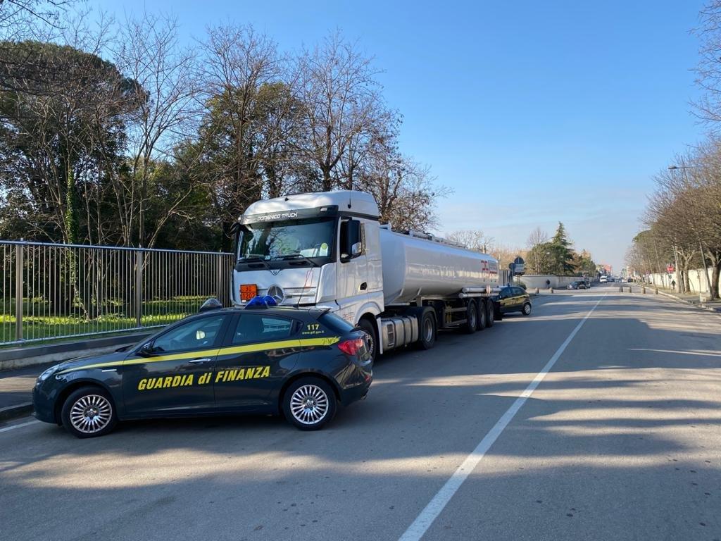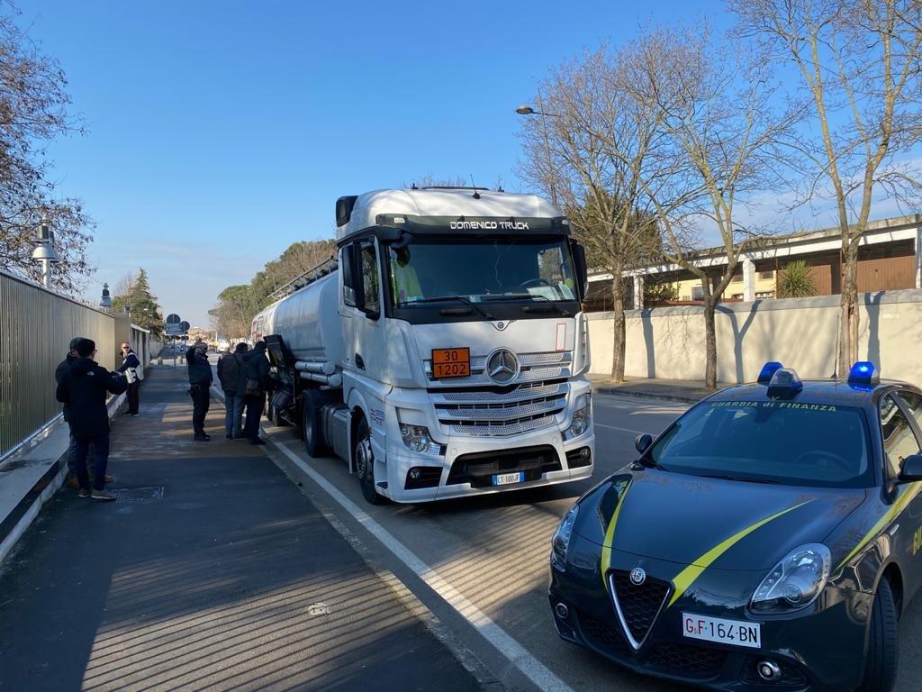 Santa Maria Capua Vetere/Capua. Nell’ambito del piano di controllo del territorio per il contrasto dei traffici illeciti, una pattuglia su strada della Compagnia della Guardia di Finanza di Caserta ha intercettato un carico di gasolio per autotrazione trasportato in totale evasione di imposta, sottoponendo a sequestro oltre 29 tonnellate di prodotto petrolifero, pari a circa 35.000 litri, e l’autocisterna utilizzata per il trasporto illecito. Denunciato all’Autorità Giudiziaria il conducente dell’automezzo.