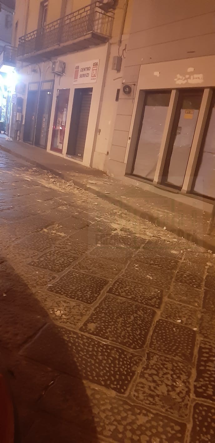I calcinacci, peraltro, sono prima finiti sul balcone e poi sono rimbalzati in strada. Nonostante si sia aperto uno squarcio evidente al primo piano dell’edificio, dunque, non ci sono gravi conseguenze.