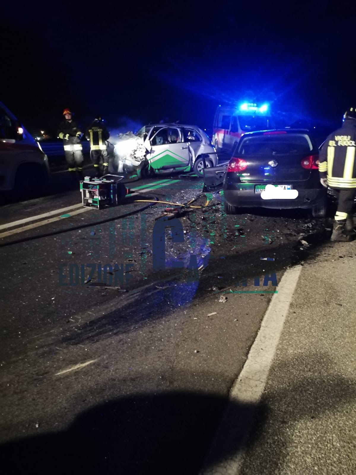 San Prisco/Santa Maria Capua Vetere. Tragedia poco dopo l’una e 30 sulla variante Capua-Maddaloni, verso l’uscita San Prisco, un pò più avanti. Un terribile incidente, un frontale che ha coinvolto più vetture, una Nissan Micra argento metallizzato, una Golf nera ed una Fiat Punto, uscita fuori strada.