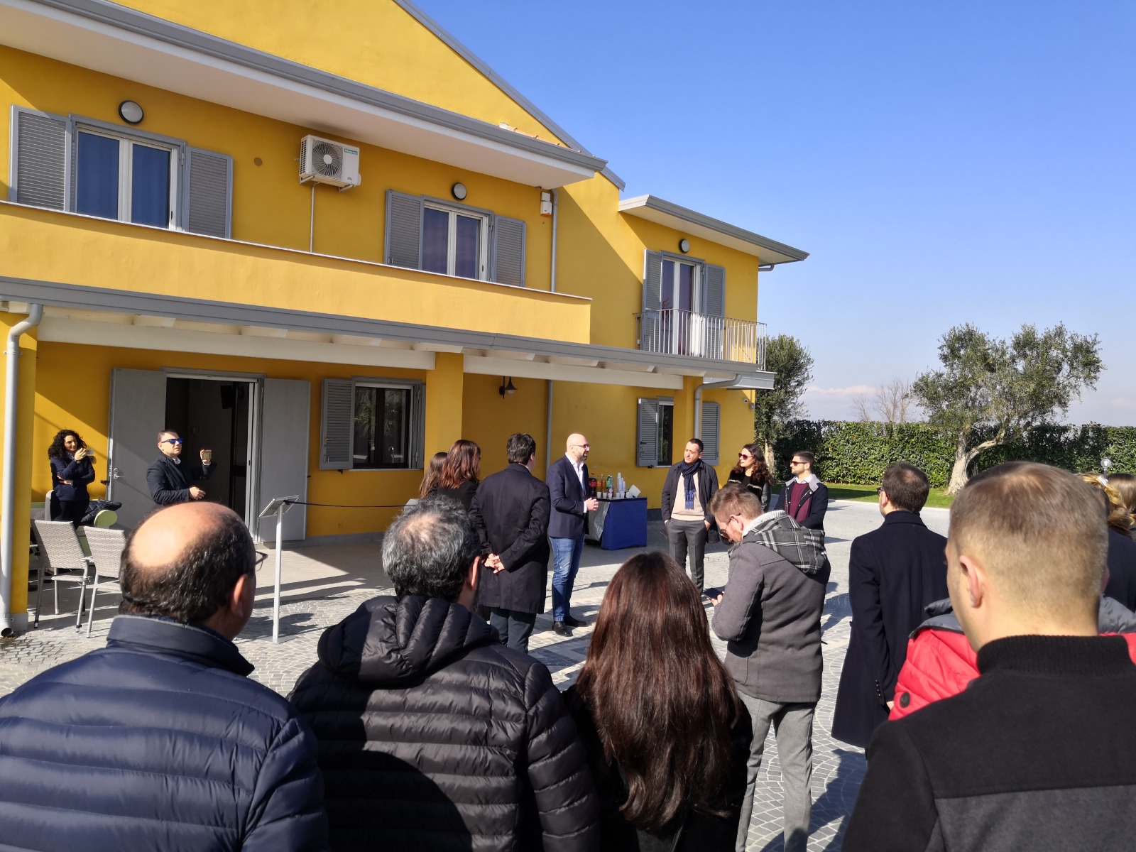 L’evento è iniziato, alle 11:30, con il rito della benedizione officiato da don Marcello Cassandra, parroco della chiesa di San Michele di Trentola Ducenta e della Chiesa di San Sossio di Villa Literno. Poi, ha preso la parola Domenico Cioce, 43 anni, avvocato, presidente della cooperativa. Dopodiché è avvenuto il taglio del nastro e il tour nella dimora, che si è concluso con un buffet. Presenti, tra gli altri, Valerio Di Fraia, sindaco di Villa Literno, Marcello De Rosa, sindaco di Casapesenna, Vincenzo Caterino, sindaco di San Cipriano e nonno Dionigi, il primo ospite della struttura.