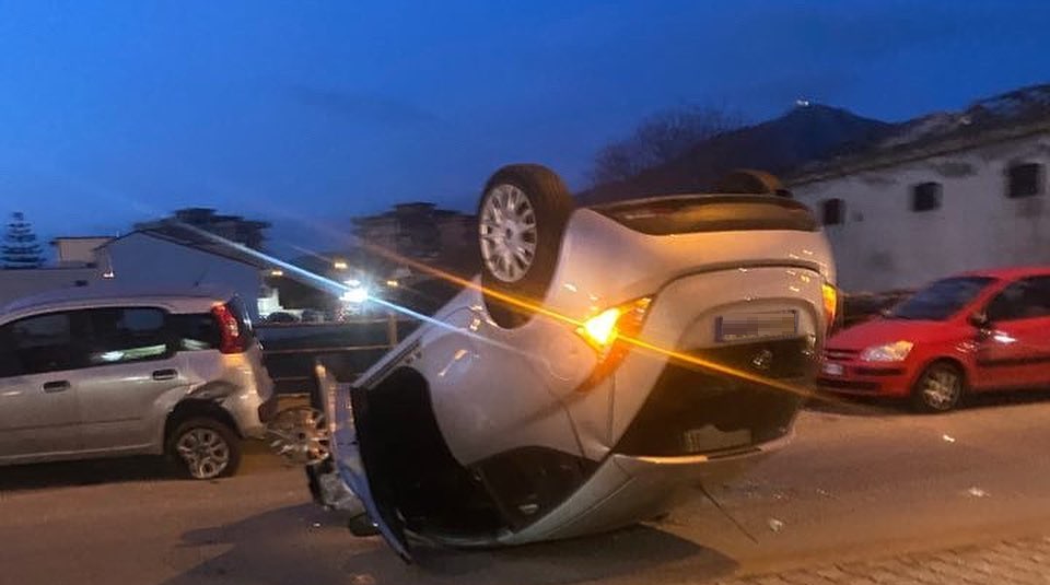 SANTA MARIA CAPUA VETERE. Paura nel tardo pomeriggio di ieri in via Jan Palach a Santa Maria Capua Vetere. Una Lancia Y si è infatti ribaltata all’altezza dello stadio Piccirillo.