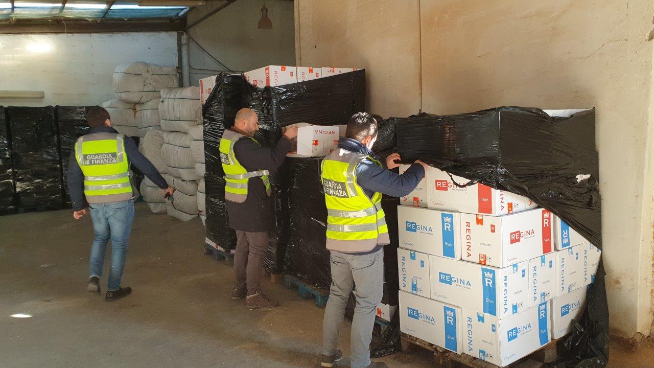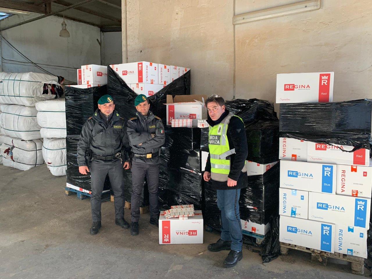 Complessivamente sono stati quindi sottoposti a sequestro kg. 9.110 di sigarette di marca “Regina” per un valore complessivo di mercato prossimo al milione e mezzo di euro.
