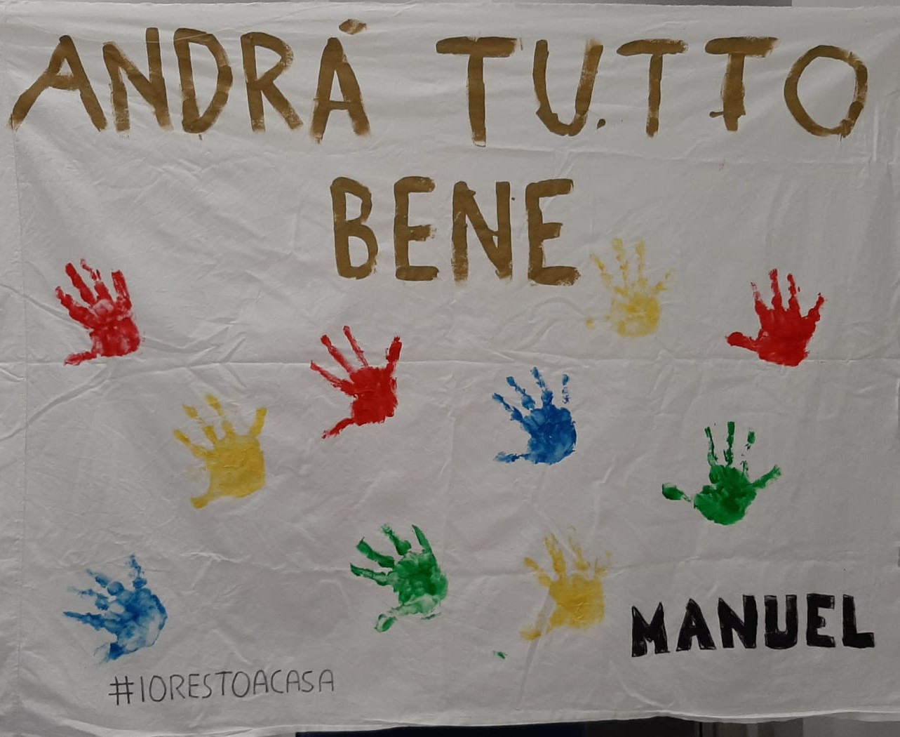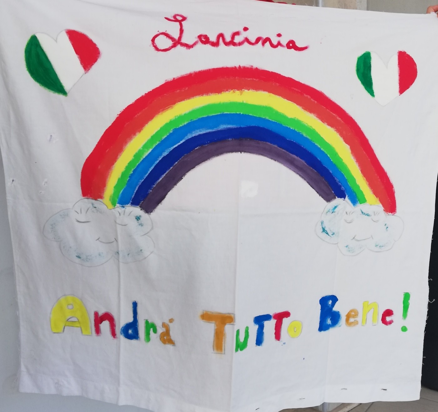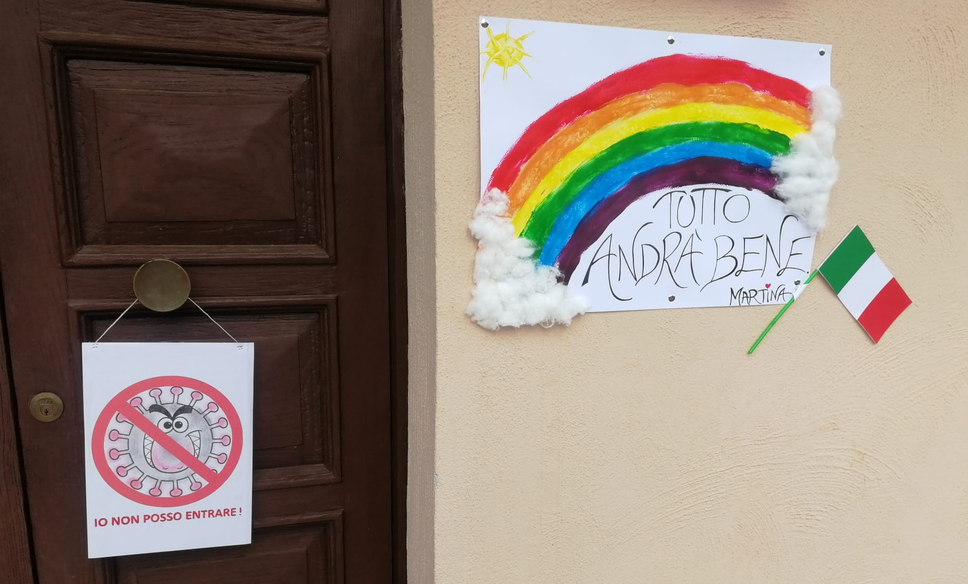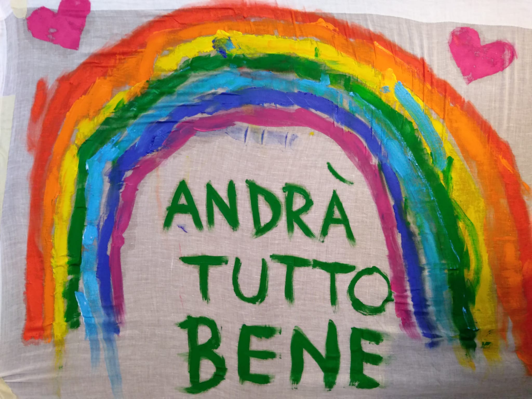 Anche sui balconi e fuori le porte delle abitazioni di Calvi Risorta sono spuntati molti cartelloni e lenzuola con i disegni dell’arcobaleno e la scritta “andrà tutto bene”, la frase simbolo per affrontare la pandemia.
