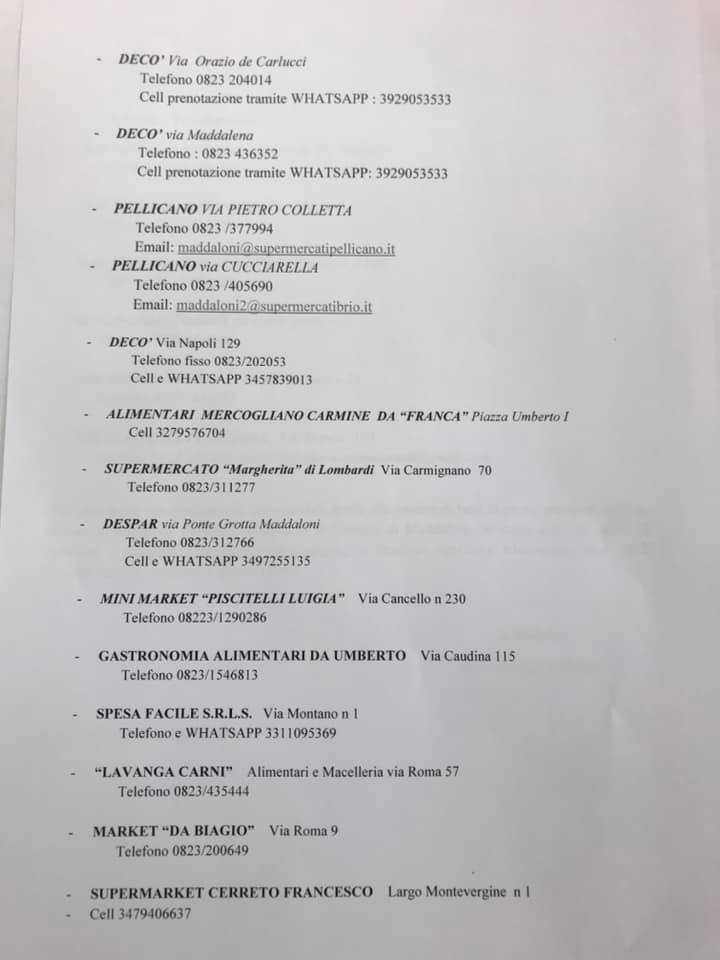 Maddaloni. Il Comune di Maddaloni per disincentivare e ridurre al massimo le uscite dei cittadini, ha istituito un servizio di consegna a domicilio della spesa alimentare e farmaceutica.