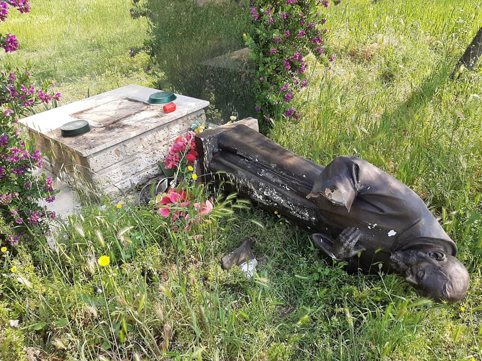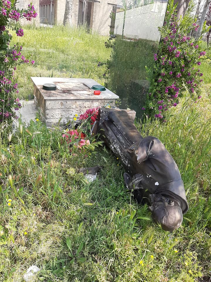 “Qualcuno nelle ultime ore ha scavalcato la recinzione, è penetrato all’interno e si è scagliato contro la statua, sradicandola dalla base, danneggiandola in più punti e lasciandola a terra.” ha dichiarato l’ex sindaco Antonello Velardi.