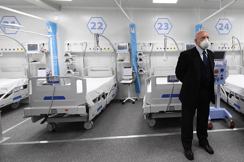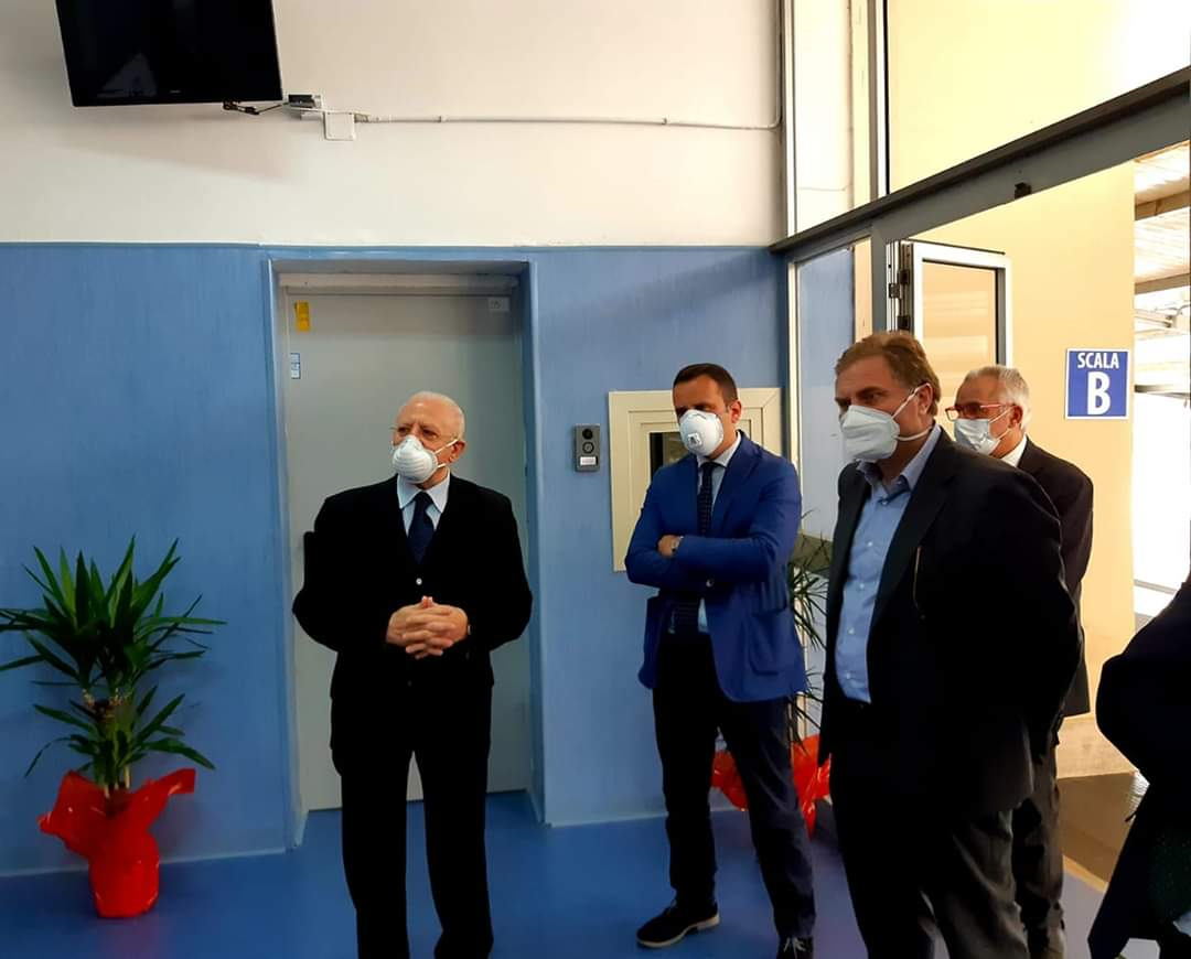 “E’ stato completato anche il Covid Center presso l’Ospedale Sant’Anna e San Sebastiano di Caserta, una struttura di avanguardia, dotata di 24 posti letto di terapia intensiva.” ha dichiarato Vincenzo De Luca.