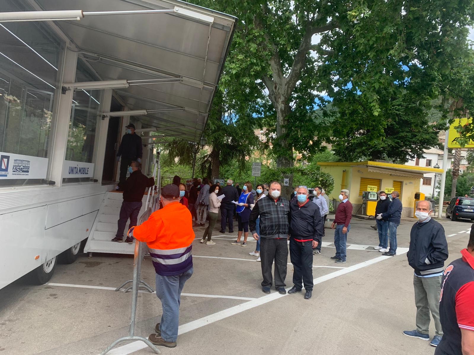Già tanti i santangiolesi che, dalle prime ore della mattinata, sono in fila in Piazza XX Settembre per accedere all’unita mobile inviata dall’azienda sanitaria locale di Terra di Lavoro per accertare se vi siano cittadini positivi al Coronavirus nella piccola comunità matesina.