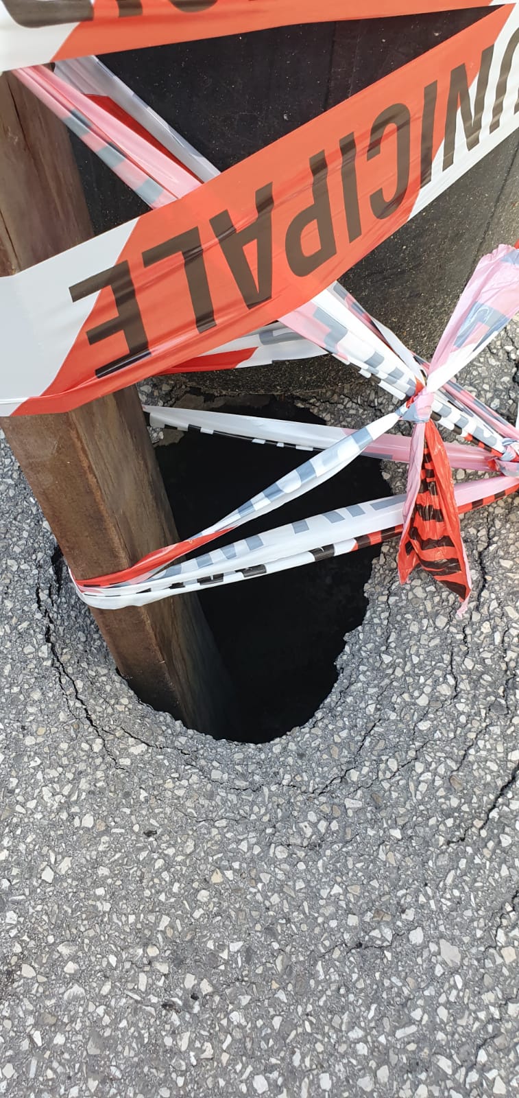 Macerata Campania. Piccola voragine con abbassamento della strada in via Vittorio Emanuele, nel cuore della frazione Caturano. Sul posto sono intervenuti gli addetti del Comune dopo la segnalazione dei cittadini, applicate tutte le possibili segnalazioni, con tanto di grossolano bidone dell’immondizia, mentre nel buco ci hanno inserito una spranga di legno. Insomma non è proprio un bel vedere ma probabilmente sarà funzionale.