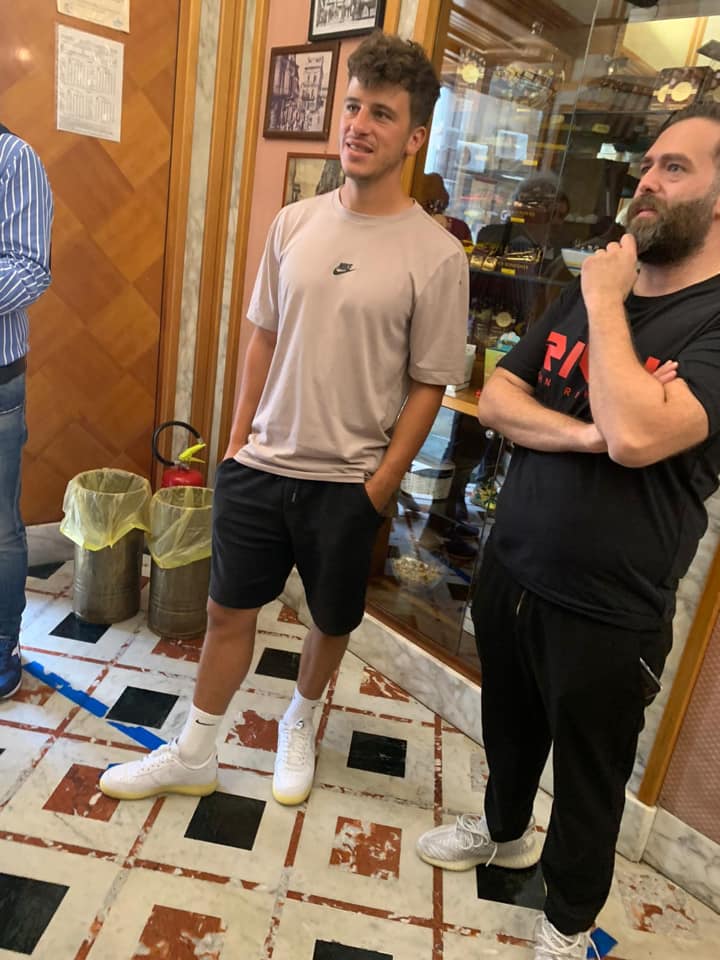 Il centrocampista del Napoli Demme nella pasticceria del Casertano