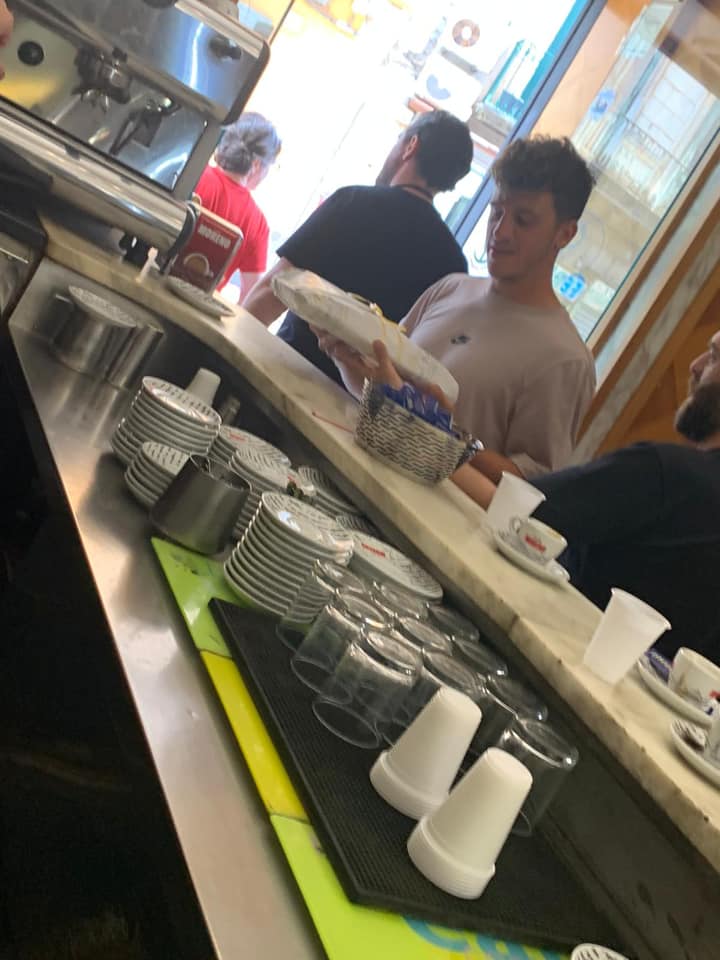 Per il numero 4 azzurro un caffè al banco ed un vassoio di polacche da portare via.