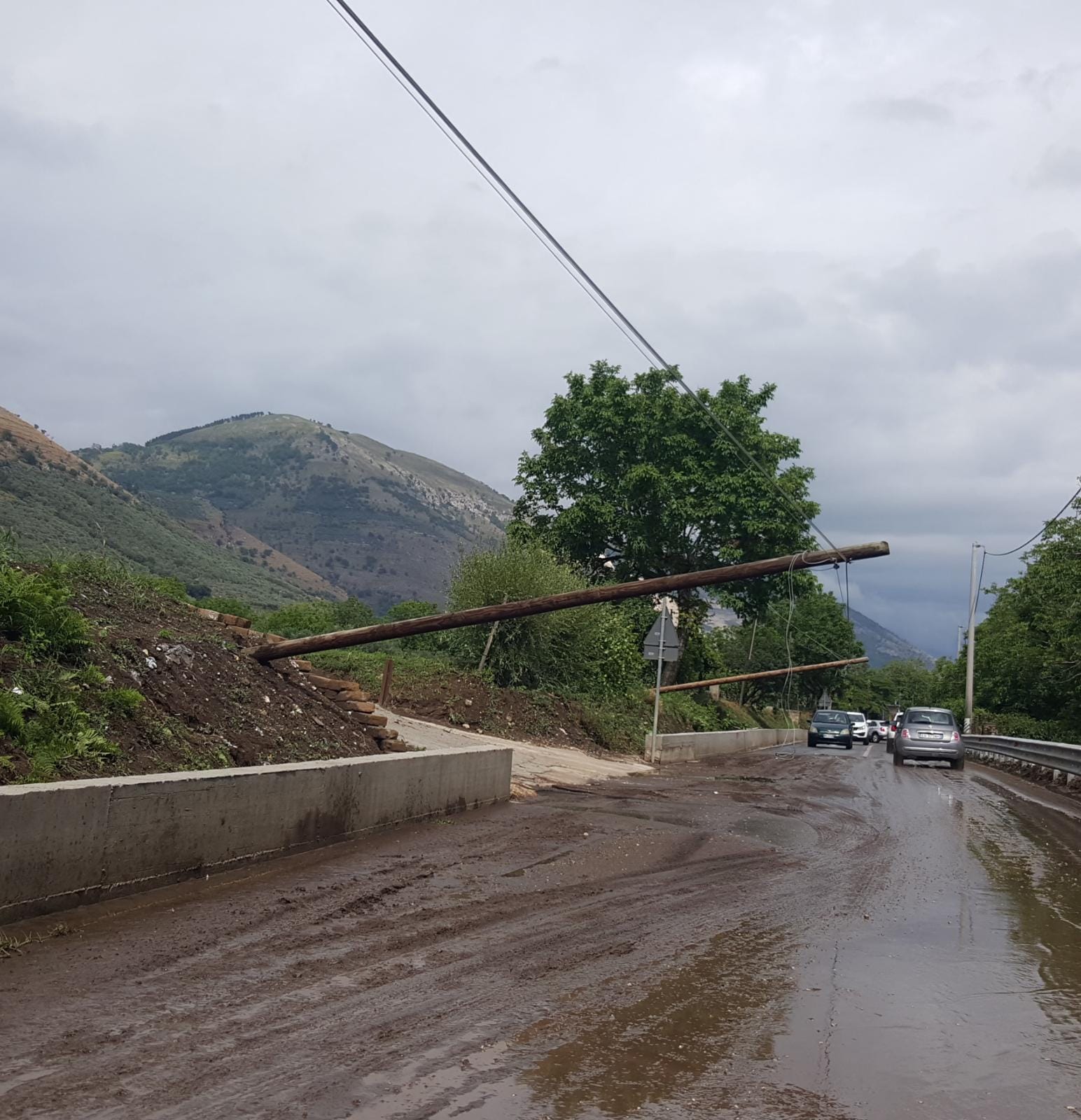 . Situazione abbastanza difficile in via Polvica, duramente provata dal temporale di oggi, come tutta la zona di Cancello Scalo. I residenti e gli automobilisti in transito stanno segnalando questi pali penzolanti già da diversi minuti.