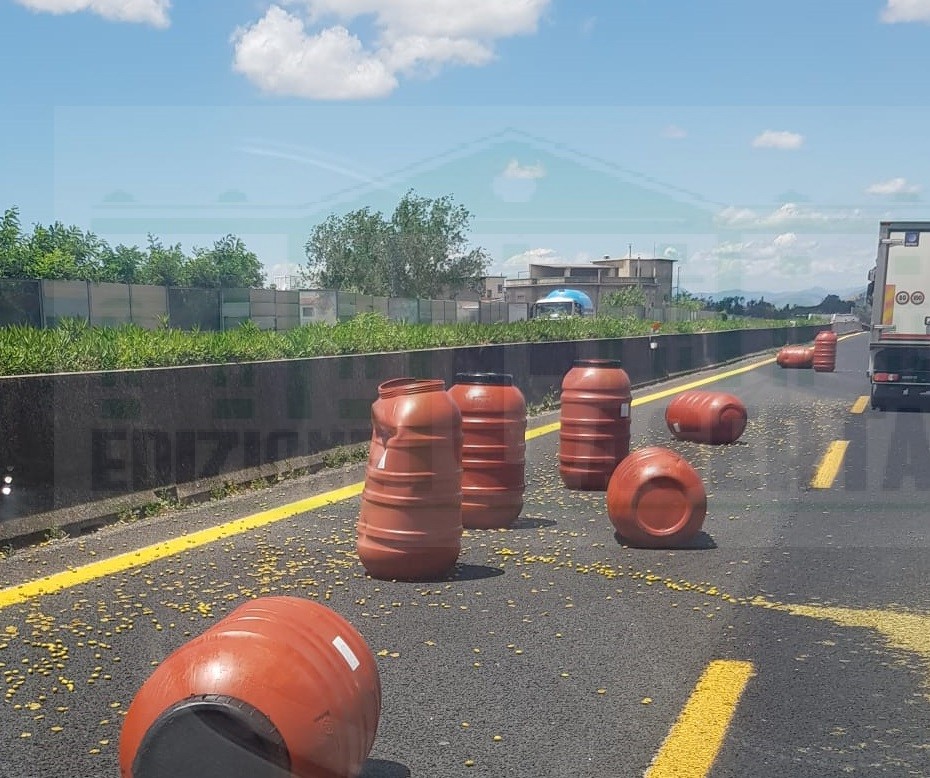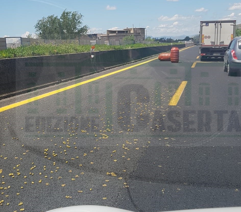 Un tir ha perso infatti il carico di olive: i bidoni, con il relativo contenuto, si sono riversati sull’asfalto. E’ accaduto poco prima delle 13 lungo la carreggiata Nord della Roma-Napoli, a un chilometro dall’uscita di Caserta Sud.