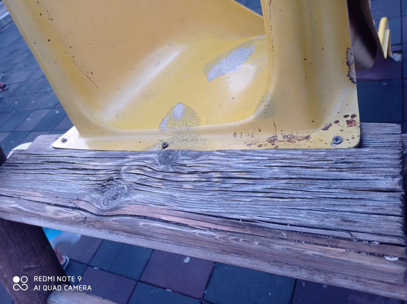 Ci sono delle viti arrugginite senza protezione che potrebbero fare molto male, mancano anche dei ganci di sicurezza, così come bisognerebbe dare una stretta ai bulloni.
