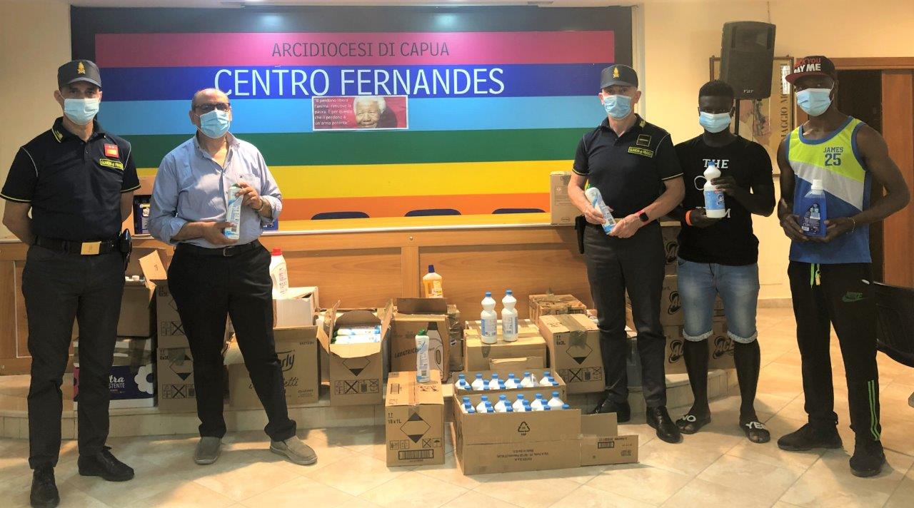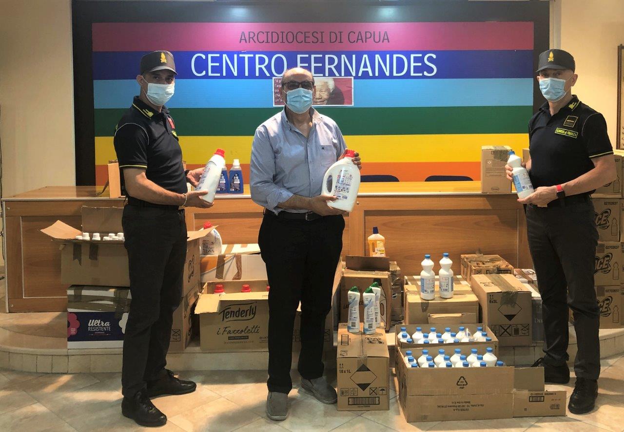 CASTEL VOLTURNO/CAPUA. Il Comando Provinciale della Guardia di Finanza di Caserta – in esecuzione di un provvedimento emesso dalla locale Camera di Commercio – ha devoluto in beneficenza al Centro Fernandes di Castel Volturno circa 5.700 confezioni di prodotti igienizzanti: si tratta di detersivi per la pulizia degli ambienti e di indumenti e di prodotti per l’igiene personale sequestrati dalle Fiamme Gialle nel mese di dicembre 2018 presso un grande magazzino, per violazioni relative all’etichettatura, risultata non conforme alle disposizioni del Codice del Consumo.