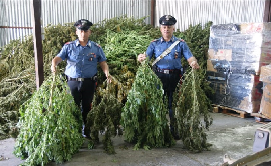 I militari dell’Arma, a seguito di servizi finalizzati a contrastare reati in materia di stupefacenti, hanno rinvenuto, su due appezzamenti terrieri estesi per circa due ettari, in affitto ed in uso agli arrestati, due coltivazioni con 580 piante di marijuana.