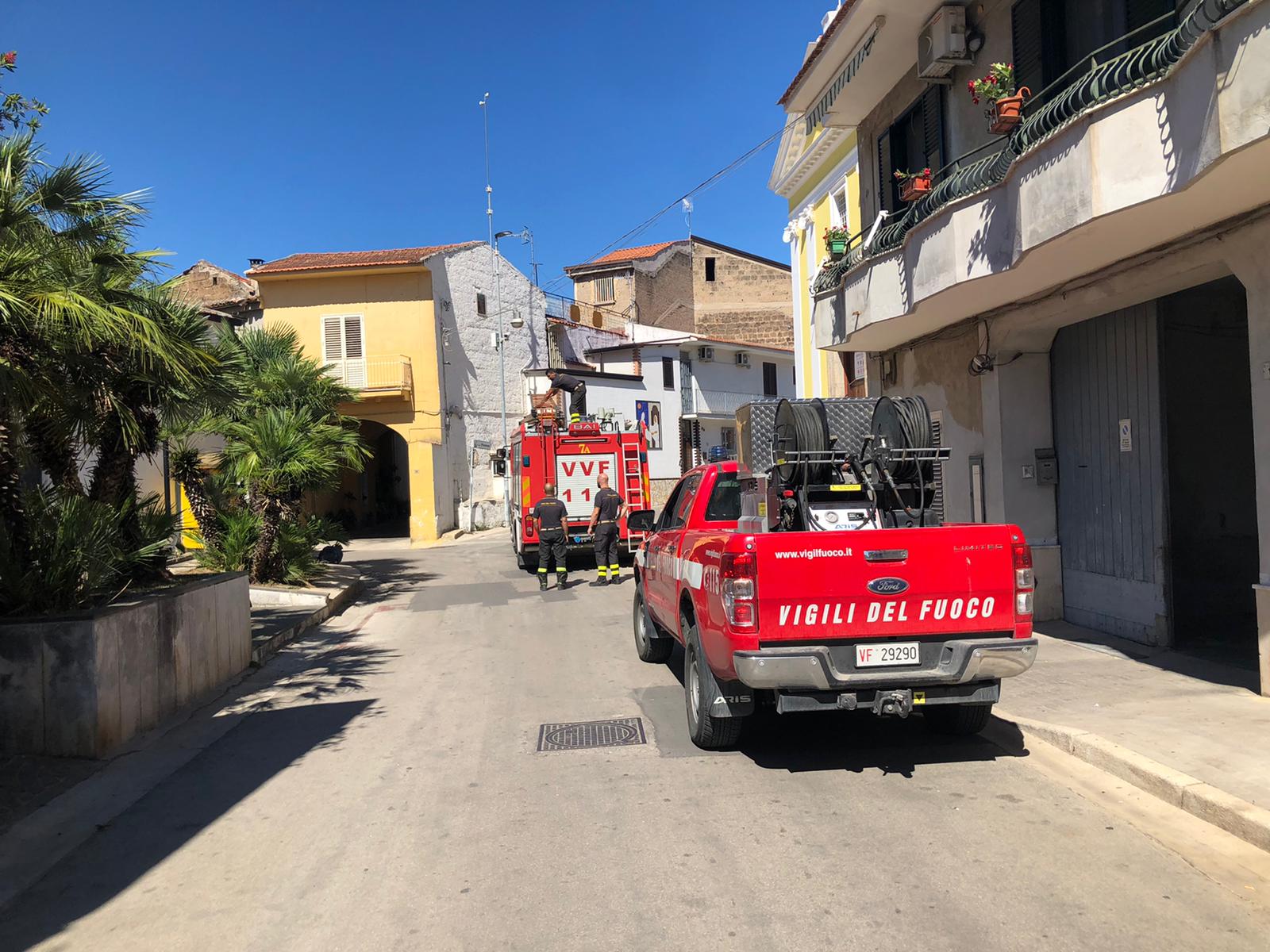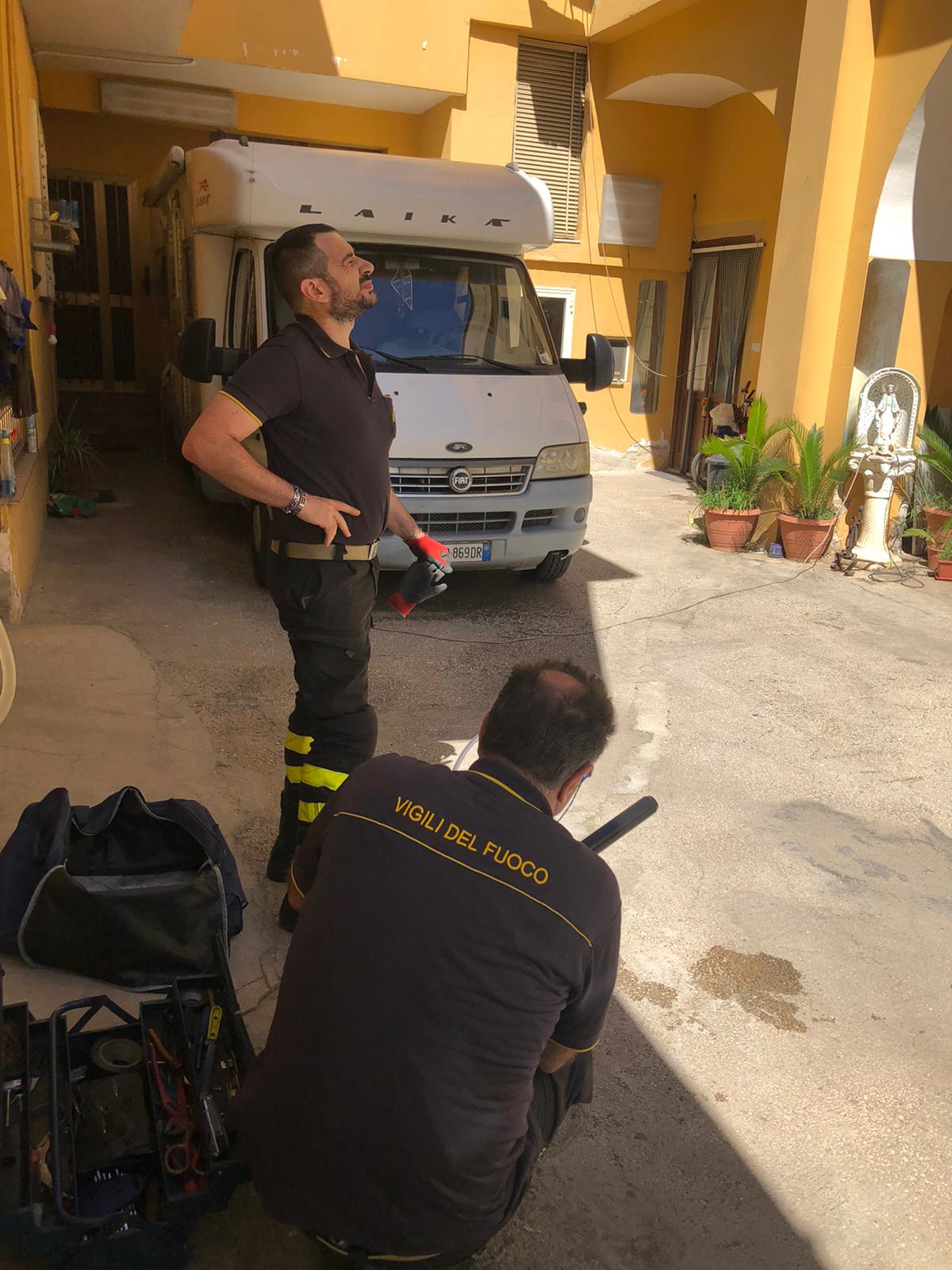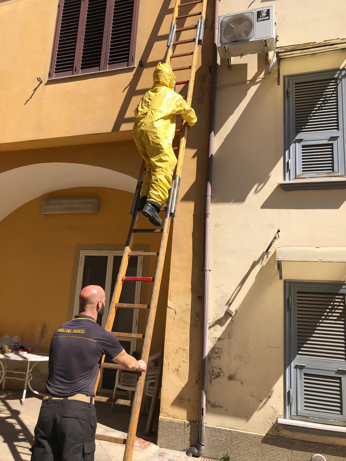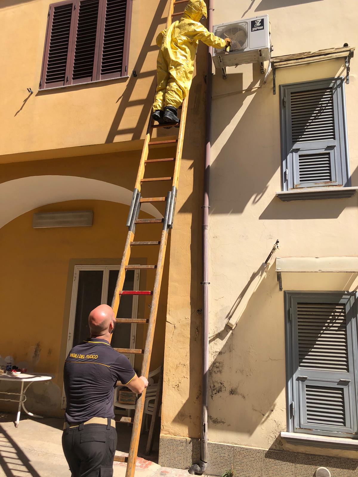 Evidentemente agli insetti era gradita la ventola. A supportare l’intervento dei vigili del fuoco anche la polizia municipale con il casco bianco Fiano.