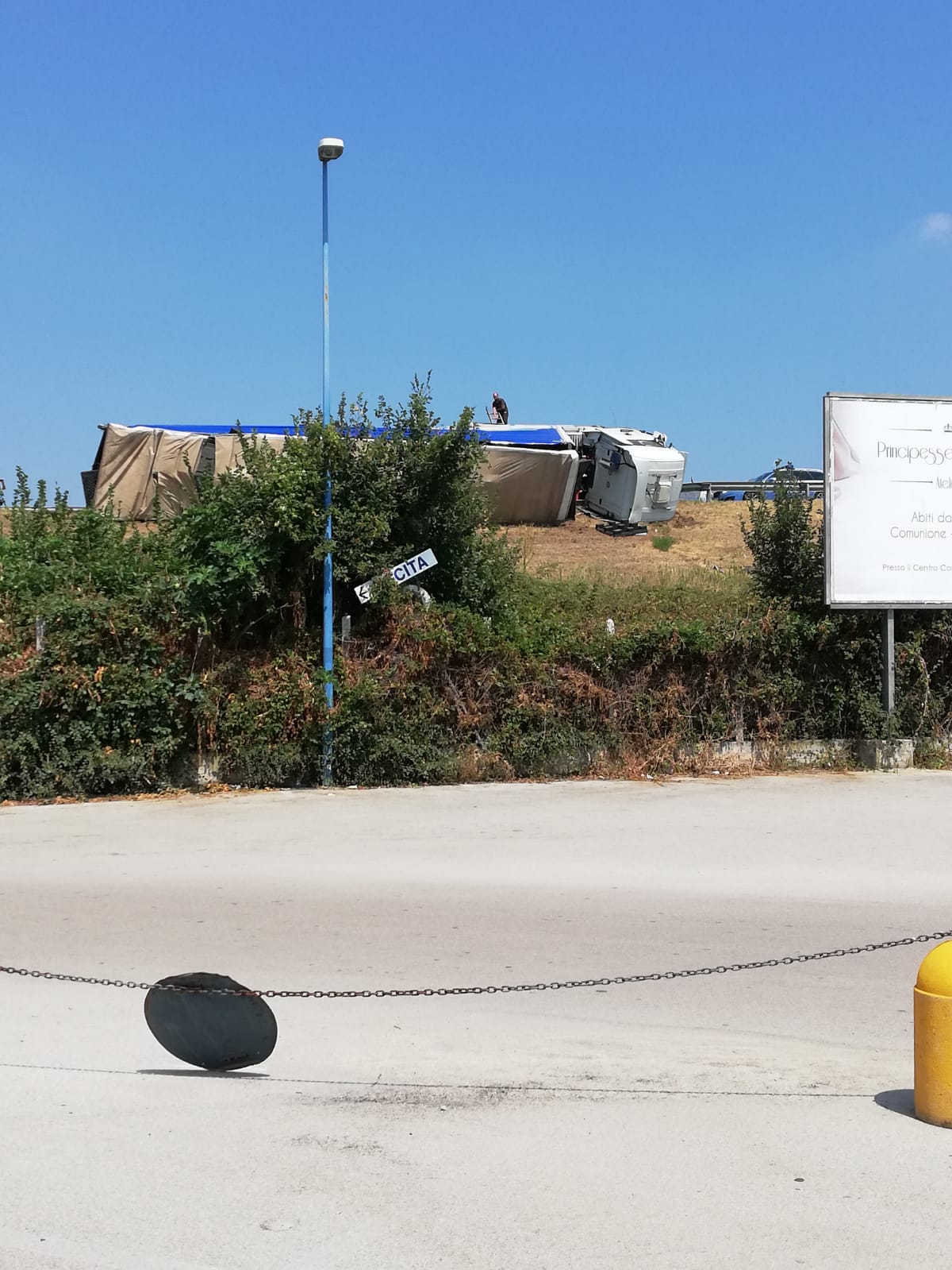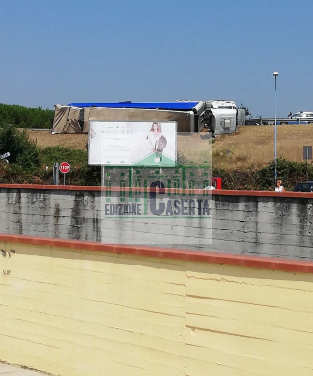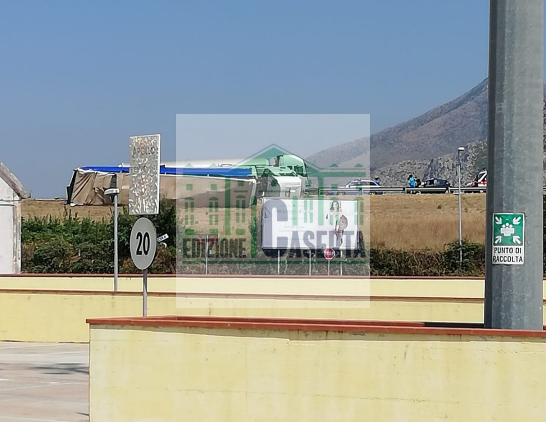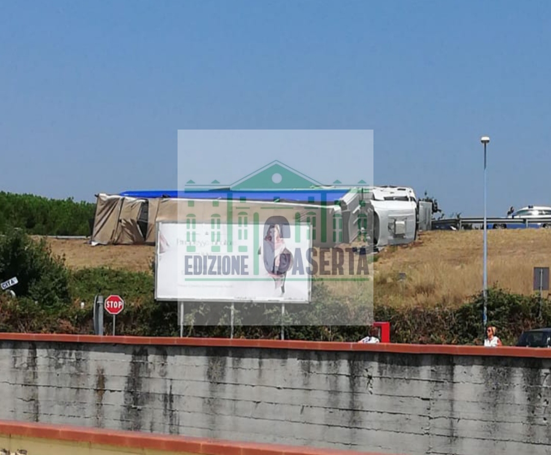 Foto e video. Camion si ribalta e distrugge guardrail, choc a Caserta Nord