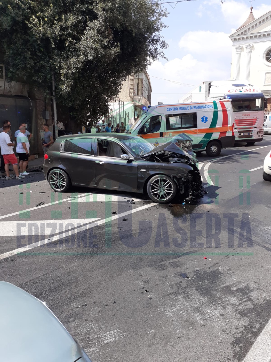 San Felice a Cancello. Frontale terrificante nella frazione Cancello Scalo, proprio davanti la chiesa. Sono venuti a contatto un’Alfa 147 ed un’Alfa GTO.