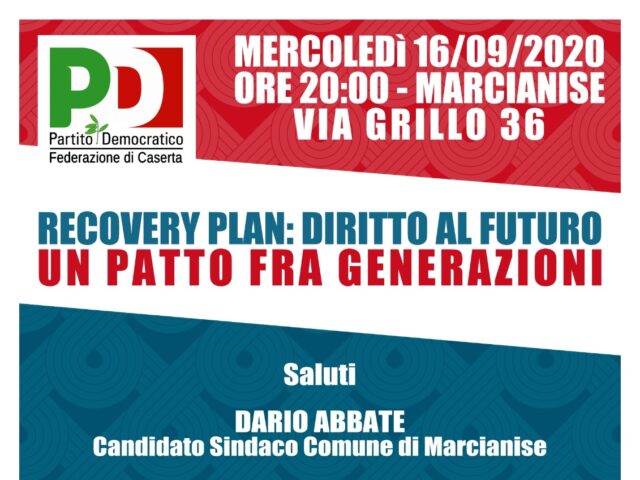 Marcianise. Mercoledì 16 alle ore 20 a Marcianise iniziativa pubblica con il Ministro per il Sud e per la Coesione … Leggi tutto Recovery plan, patto fra generazioni. Il ministro dal candidato Dario Abbate