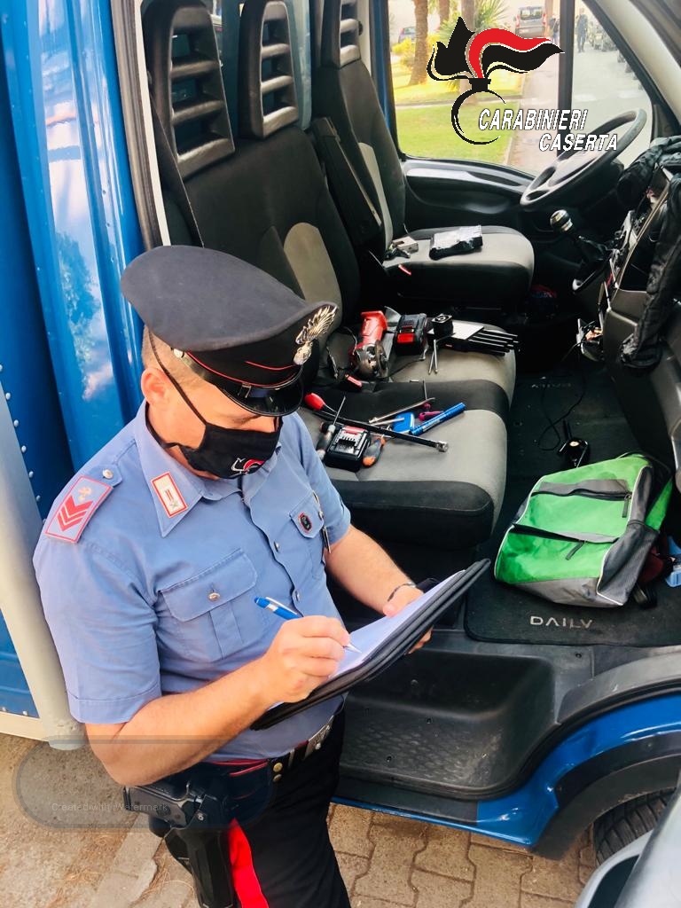 Aveva appena terminato di scaricare dei mobili in via Unità d’Italia, a Caserta, quando, nell’andare a riprendere l’autocarro, ha notato un soggetto allontanarsi proprio alla guida del suo camion. La vittima ha immediatamente allertato i carabinieri che si sono posti alla ricerca dell’autocarro fino a quando non lo hanno intercettato e bloccato sulla SS 700. All’interno del veicolo i carabinieri hanno rinvenuto e sequestrato arnesi da scasso (tra cui una smerigliatrice), una centralina elettronica ed un disturbatore di frequenza.