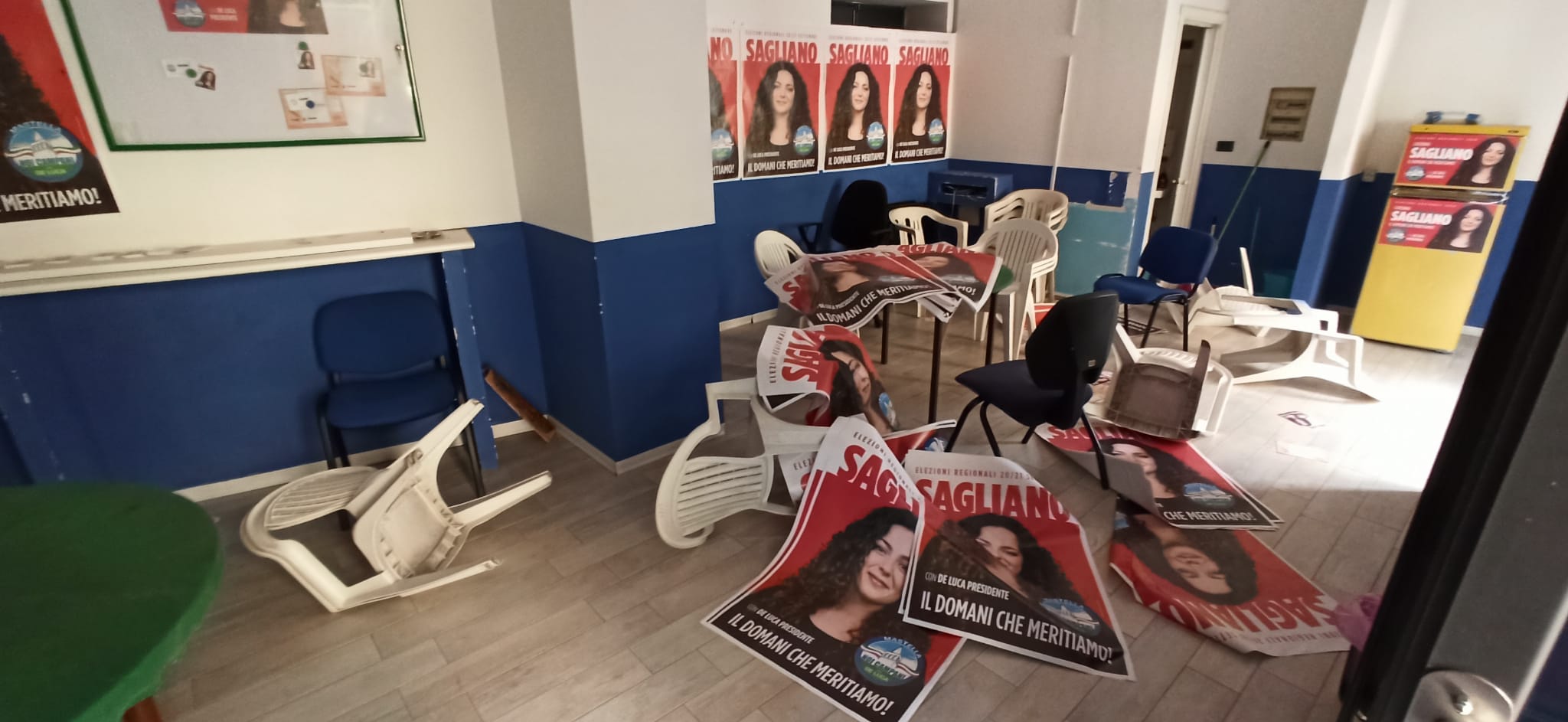 Casal di Principe. Ombre su queste ultime ore di voto. A Casal di Principe nella notte è stato devastato il comitato elettorale della candidata al consiglio regionale Caterina Sagliano, inserita nella lista di Mastella a supporto del presidente De Luca.