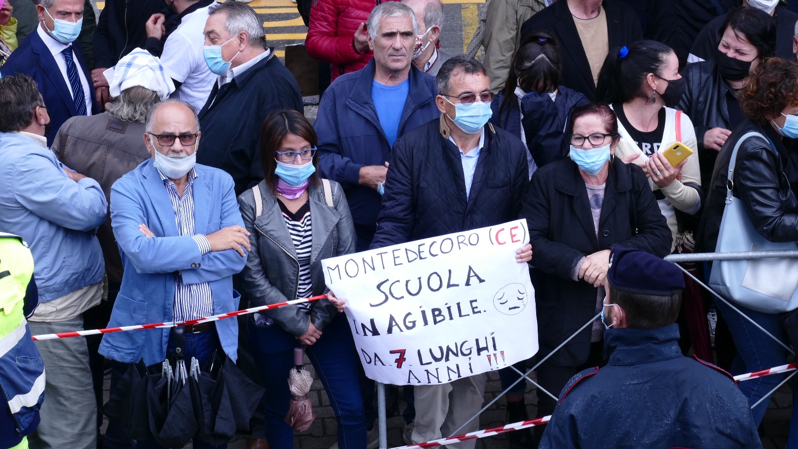 E tra i tanti cartelli di protesta spiccavano quelli dei rappresentanti della scuola di Montedecoro, inagibile da ben sette anni.