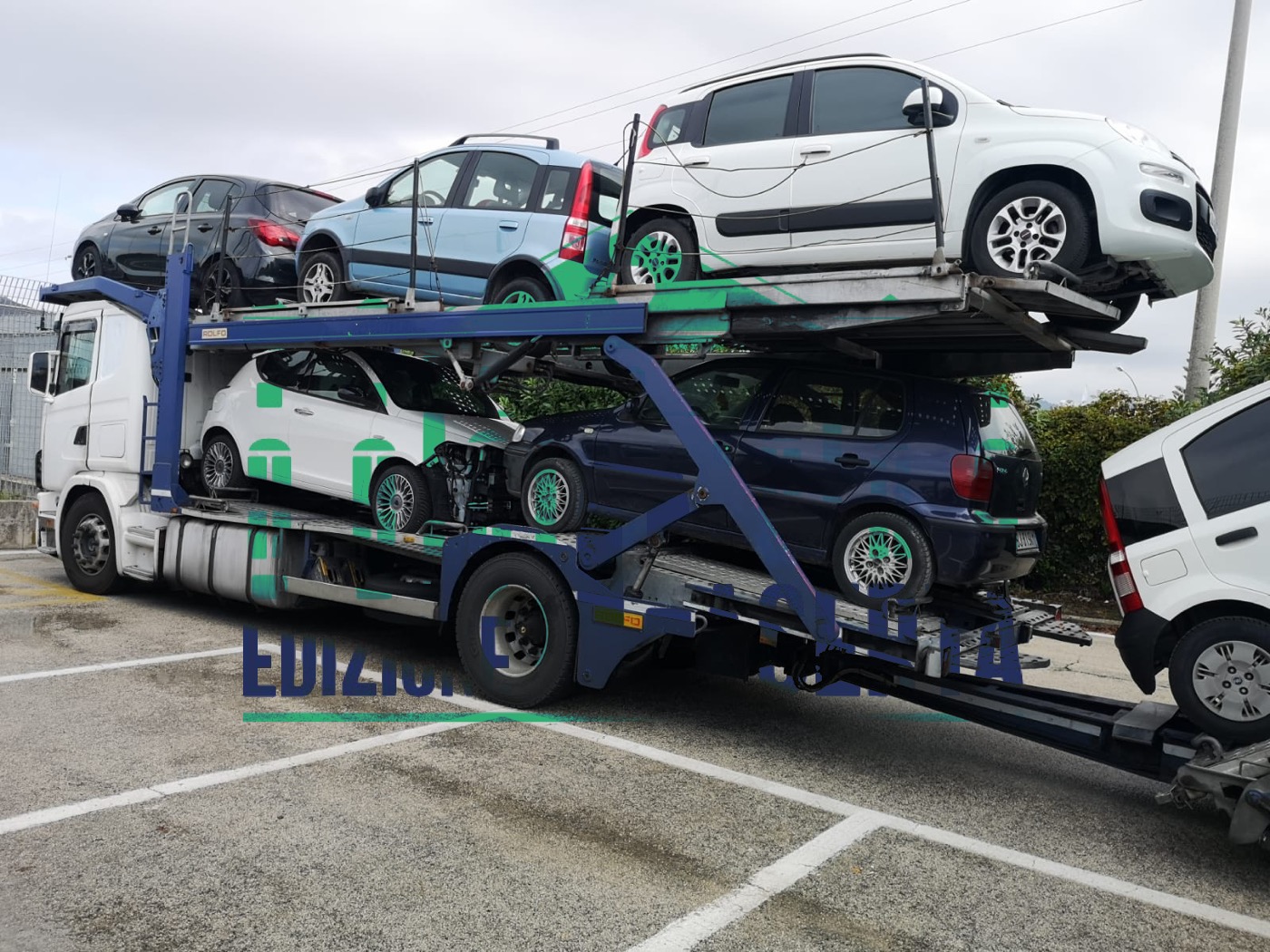 L’automezzo trasportava dieci vetture usate. Ad insospettire gli agenti la targa di una delle Fiat Panda caricate che sembrava a prima vista taroccata, quindi non originale.