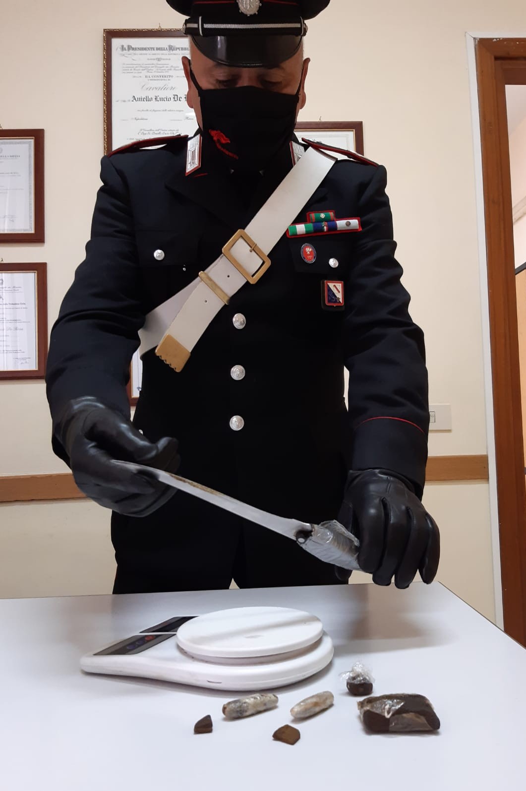 A conclusione della perquisizione quanto rinvenuto veniva sottoposto a sequestro e il pregiudicato, avente anche precedenti specifici, veniva tratto in arresto per illecita detenzione ai fini di spaccio di sostanze stupefacenti. Lo stesso, dopo le formalità di rito, veniva associato nuovamente agli arresti domiciliari a disposizione dell’Autorità Giudiziaria.