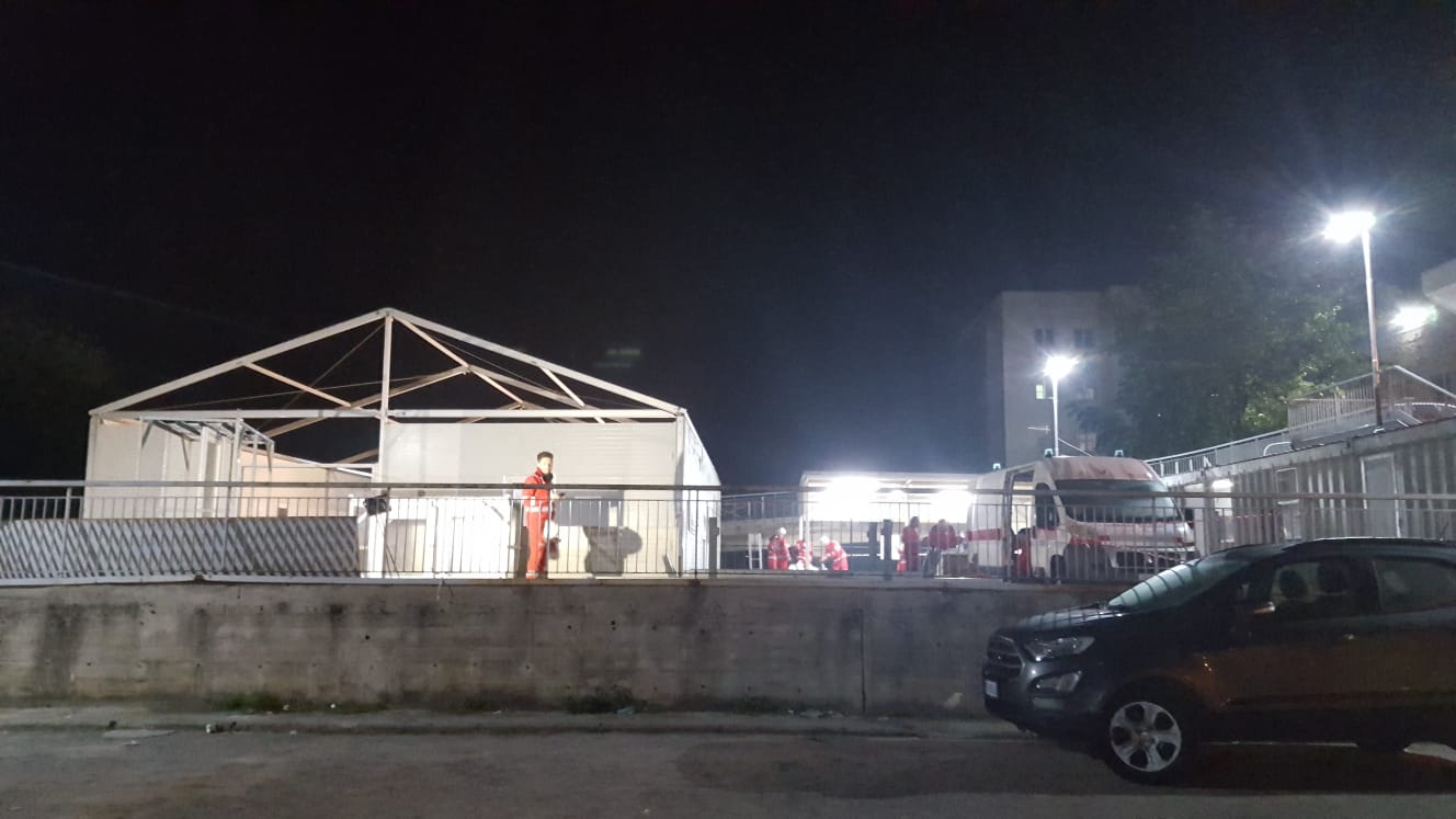 MARCIANISE. Da una parte la folla che si riversa nelle strade e nei bar dopo quasi due settimane di lockdown locale. Dall’altra i volontari che si preparano a realizzare un ospedale da campo per la cura del Covid nel parcheggio del pronto soccorso.
