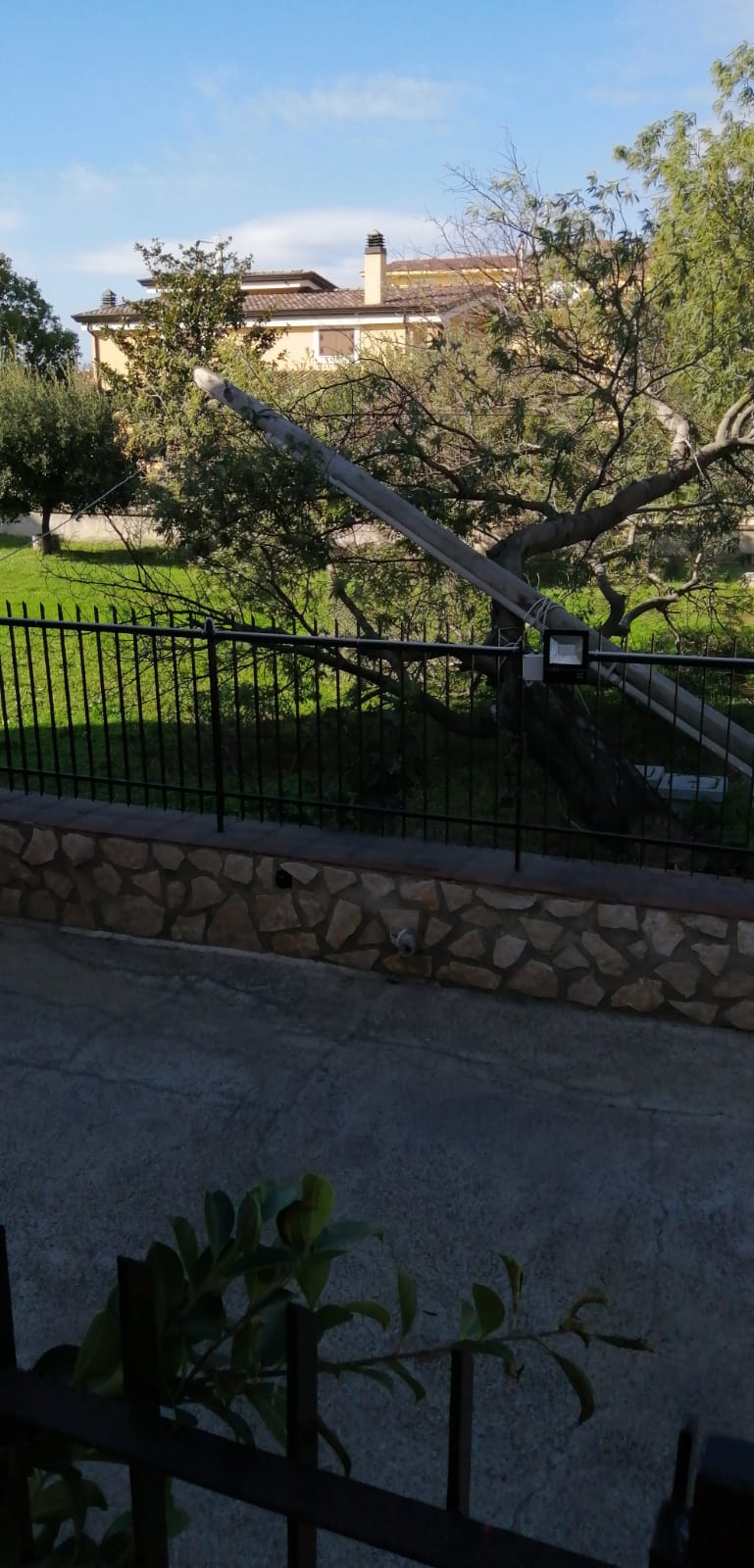 Cancello Scalo. Situazione paradossale per una famiglia di via Maddaloni ancora alle prese con le scorie del maltempo dello scorso week end. Come da foto allegate in questa parte della città al confine con Maddaloni, precisamente all’interno di un terreno è crollato un palo di sostegno alla linea Telecom.,