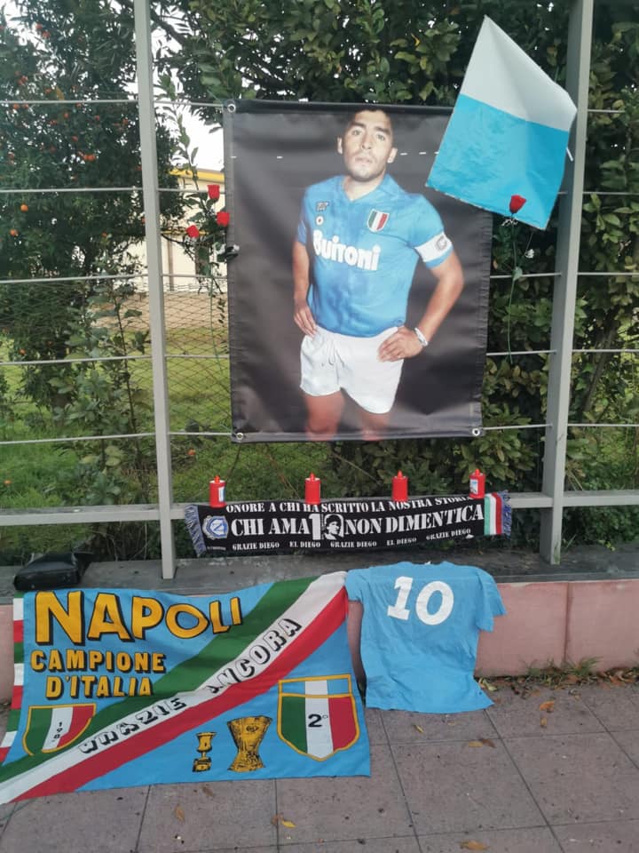 Un gruppo di tifosi azzurri si è fatto promotore di un’altra iniziativa: è stato realizzato un altarino nei pressi del liceo Quercia. “Dopo la dipartita del nostro fratello Diego Armando Maradona , impossibilitati nello spostarci per motivi evidenti con Nicola Zarrillo Maietta Luigi Scognamiglio Francesco Santorsola abbiamo deciso di realizzare un piccolo altarino per omaggiare il più grande della storia del calcio del Napoli e del mondo.. Per chi volesse rivolgerli un pensiero può recarsi in Largo Pietro Zinzi ( rotonda liceo Quercia)…. Facciamo in modo che il nostro affetto possa arrivargli fin lassù” ha commentato l’attore Gepy Scognamiglio.