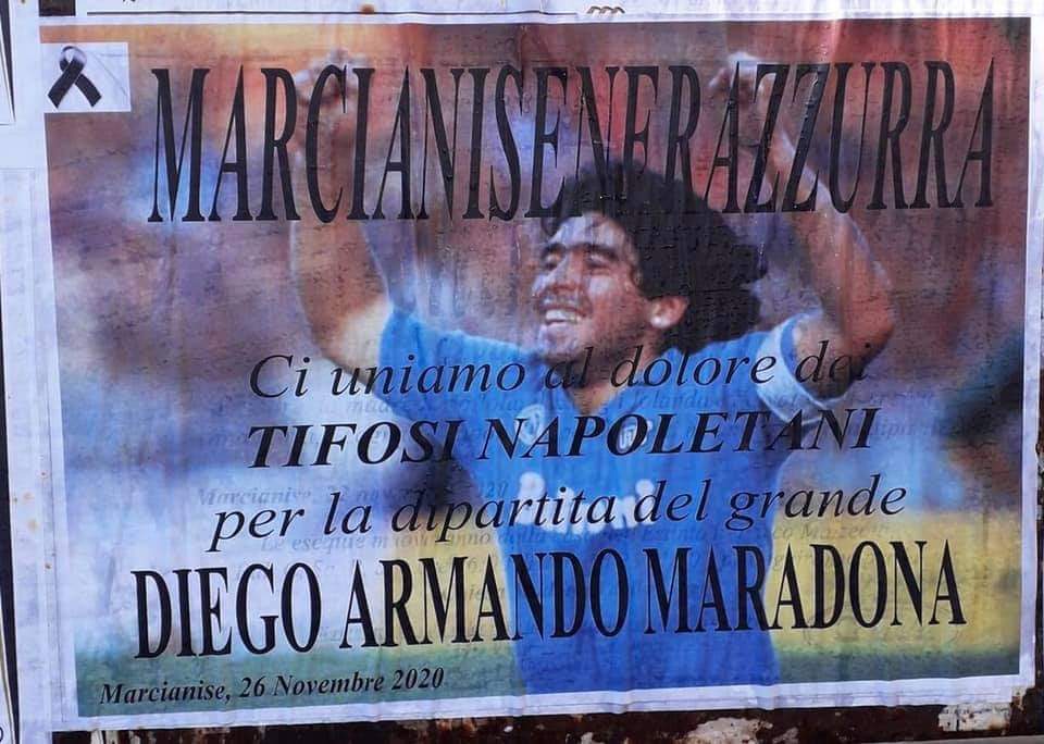 I primi a dedicare un pensiero al Diez sono stati i rivali nerazzurri, mai come questa volta uniti in un abbraccio con i tifosi del Napoli. Il club Marcianise Nerrazzurra ha affisso manifesti di lutto con la foto di Maradona in segno di solidarietà con i sostenitori napoletani.