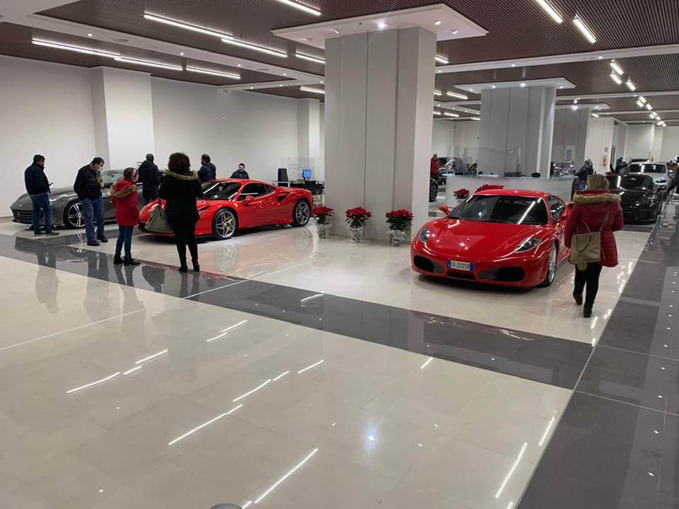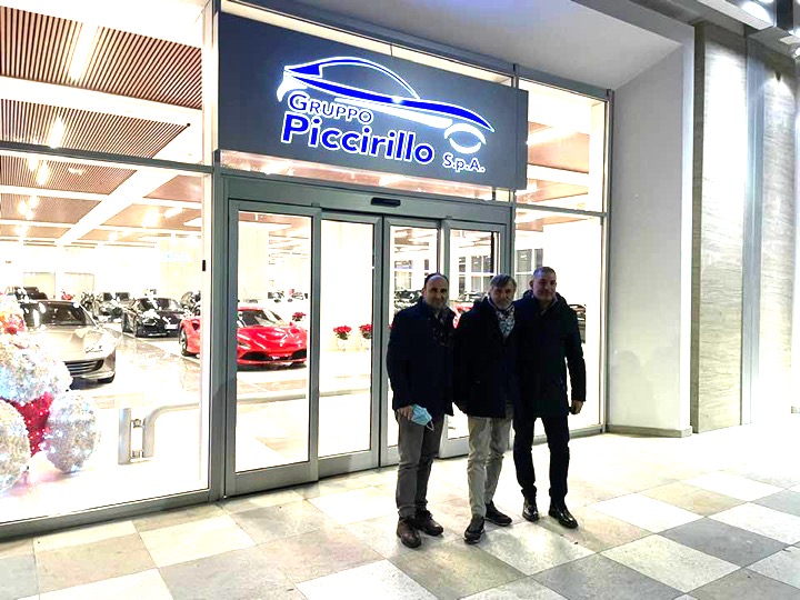 Naturalmente c’è un salone di esposizione di auto di lusso targato Piccirillo auto, come da foto allegate, la fa da padrone il cavallino rampante di Maranello.