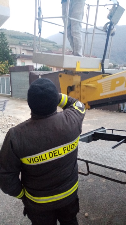 A dare una mano è venuta anche la ditta Migliore per rimuovere i detriti, alcuni addetti sono saliti sul punto danneggiato col cestello gru.