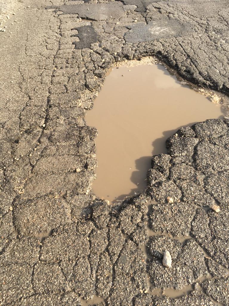 Ci sono decine e decine di buche in questa strada (almeno una settantina), è quasi impossibile uscirne indenni in queste giornate dato che sono tutte coperte dall’acqua piovana. Auspichiamo un rapido intervento, anche parziale, da parte dell’amministrazione.