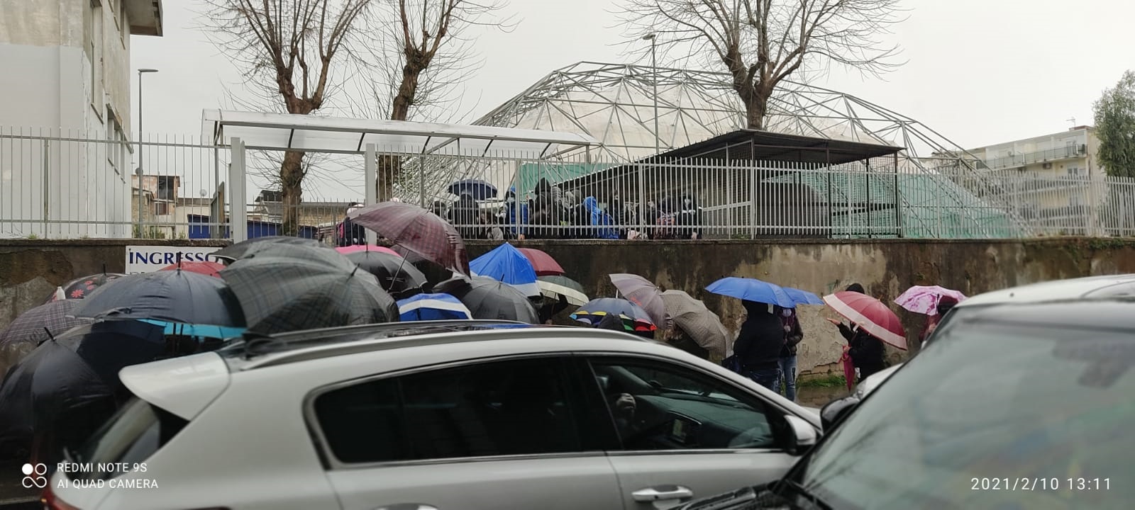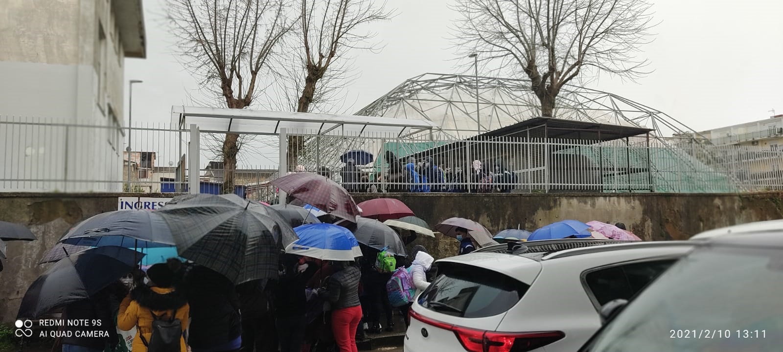 “Dopo ripetuti appelli al preside i nostri figli sono costretti ad uscire di scuola su di un marciapiede e in mezzo al traffico con le macchine che circolano in entrambi i lati e i genitori costretti in un assembramento per rendere i propri figli a scuola” testimonia un genitore.