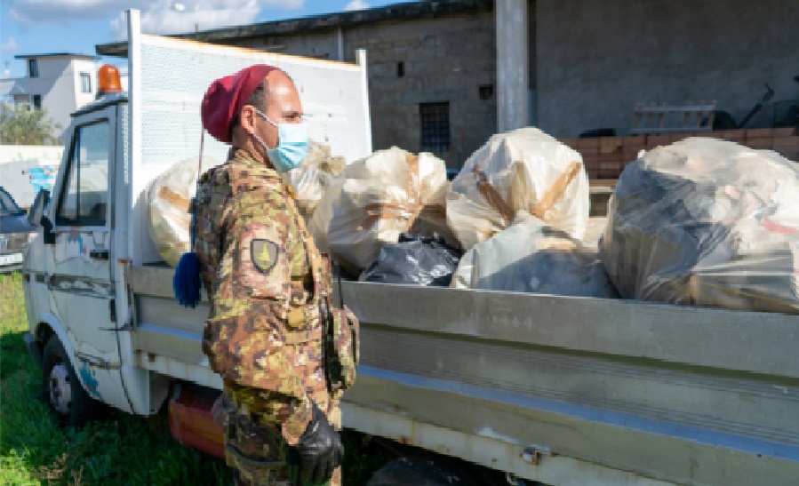 L’11 Febbraio sono entrati in azione 23 equipaggi per un totale di 58 unità interforze, nelle località e nei siti in cui abitualmente vengono abbandonati e quindi conferiti in modo illecito i rifiuti sul territorio, controllando 07 attività imprenditoriali e commerciali, di cui 06 sequestrate, 22 persone identificate, di cui 09 denunciate tra lavoratori irregolari rei di illeciti ambientali e 02 sanzionate, 76 veicoli controllati, 22 sanzionati, circa 3490 mq di aree sequestrate, circa 35 mc di rifiuti speciali non pericolosi sequestrati ed oltre 7.733 euro di sanzioni comminate, attività svolta mediante drone ambientale in zona Cisternina, Via Feudo, Alveo Somma dove si nota una grossa quantità di rifiuti in particolare elettrodomestici che provocano esondazione delle acque.