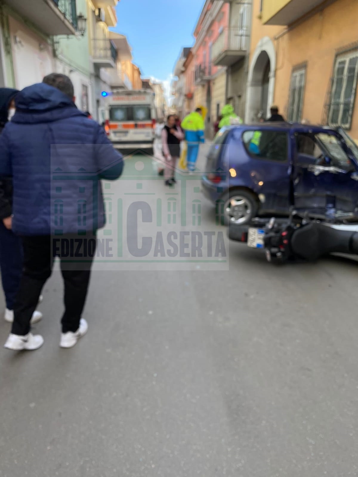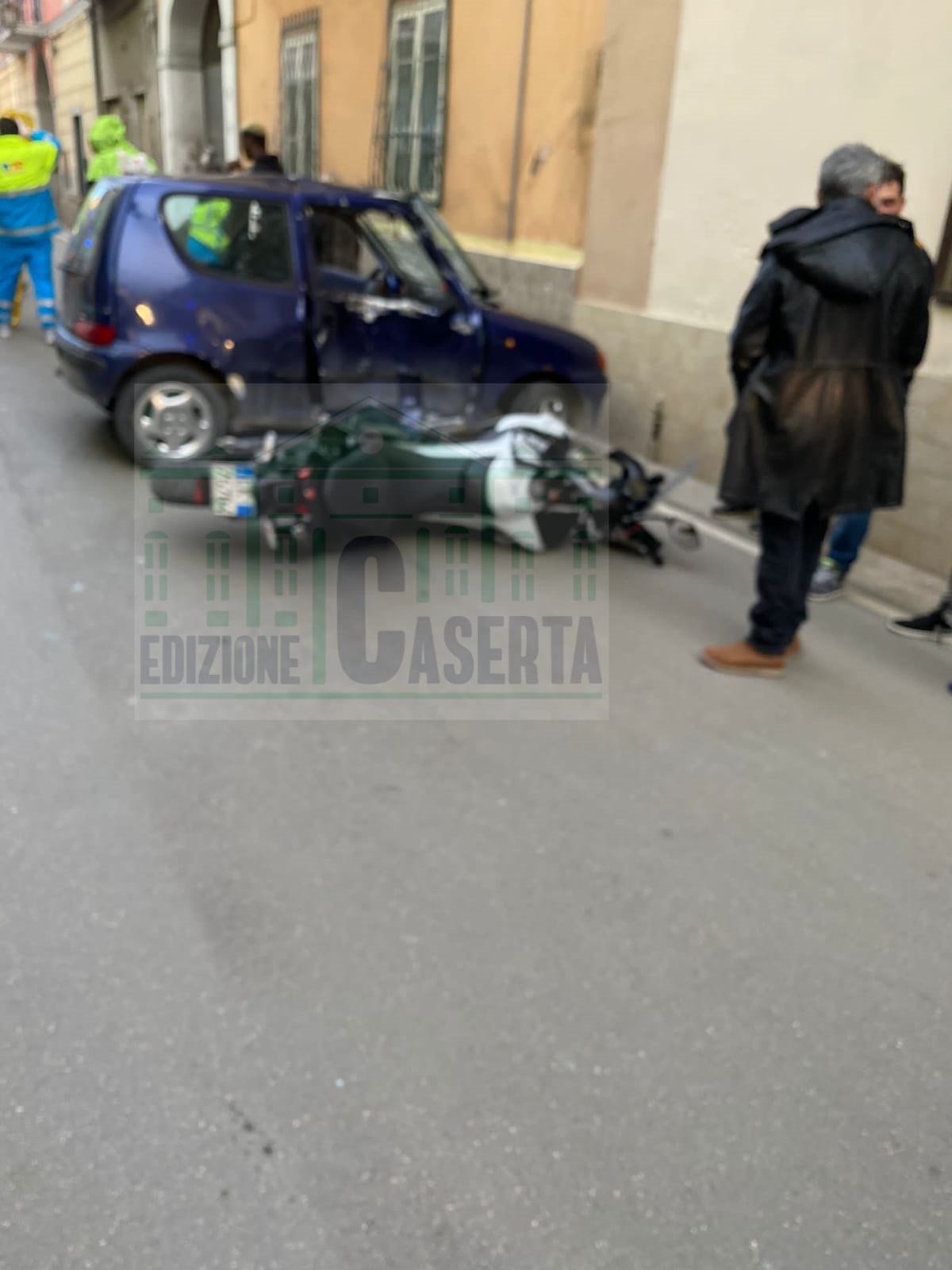 CAPODRISE/MARCIANISE. Spaventoso incidente questo pomeriggio in via Giannini a Capodrise. Una Fiat 600 ha urtato una moto Ducati con in sella due ragazzi di Marcianise. Alla guida dell’utilitaria c’era uno straniero, domiciliato in zona.