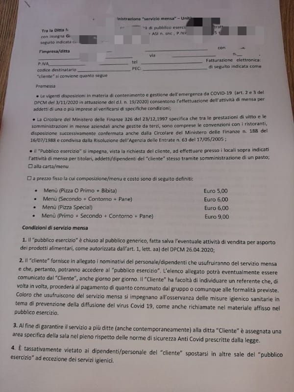 Per altro nel contratto c’è scritto che nel locale vengono rispettate le norme anticovid (e ogni azienda ha un posto suo), ma nella realtà non è così, perché non ci sono nemmeno i tavoli divisi dal plexigas, cosa che invece sarebbe opportuna visto l’aumento esponenziale dei contagi.