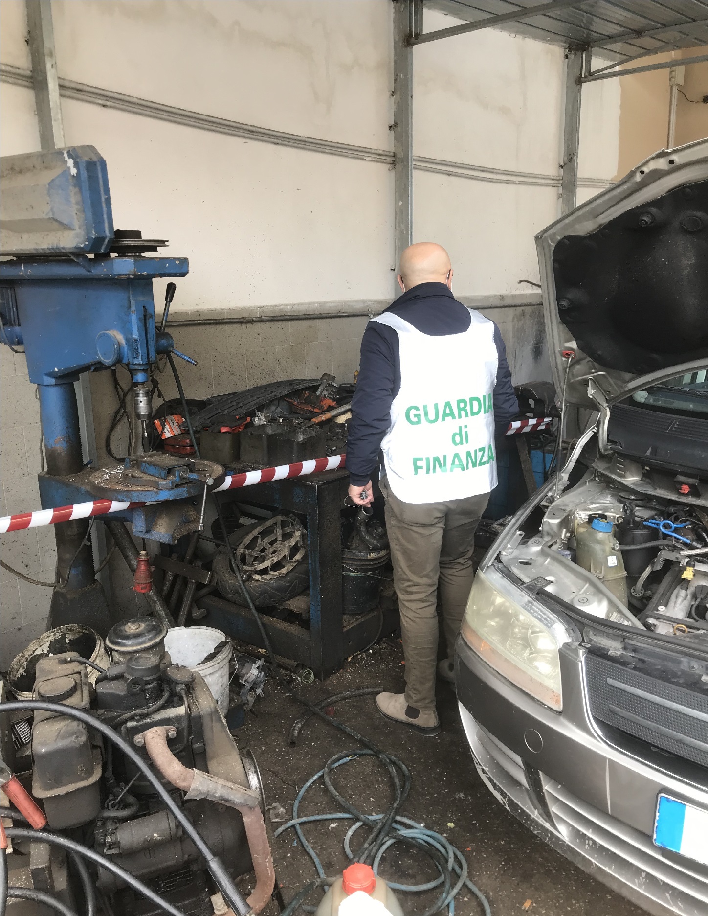 MACERATA CAMPANIA. Finanzieri della Compagnia di Caserta, nell’ambito dell’ordinaria attività di controllo economico del territorio per il contrasto all’illecito smaltimento di rifiuti speciali prodotti dalle attività commerciali, hanno individuato e sottoposto a sequestro una officina di autoriparazione completamente abusiva e totalmente sconosciuta al Fisco, ubicata nel Comune di Macerata Campania.