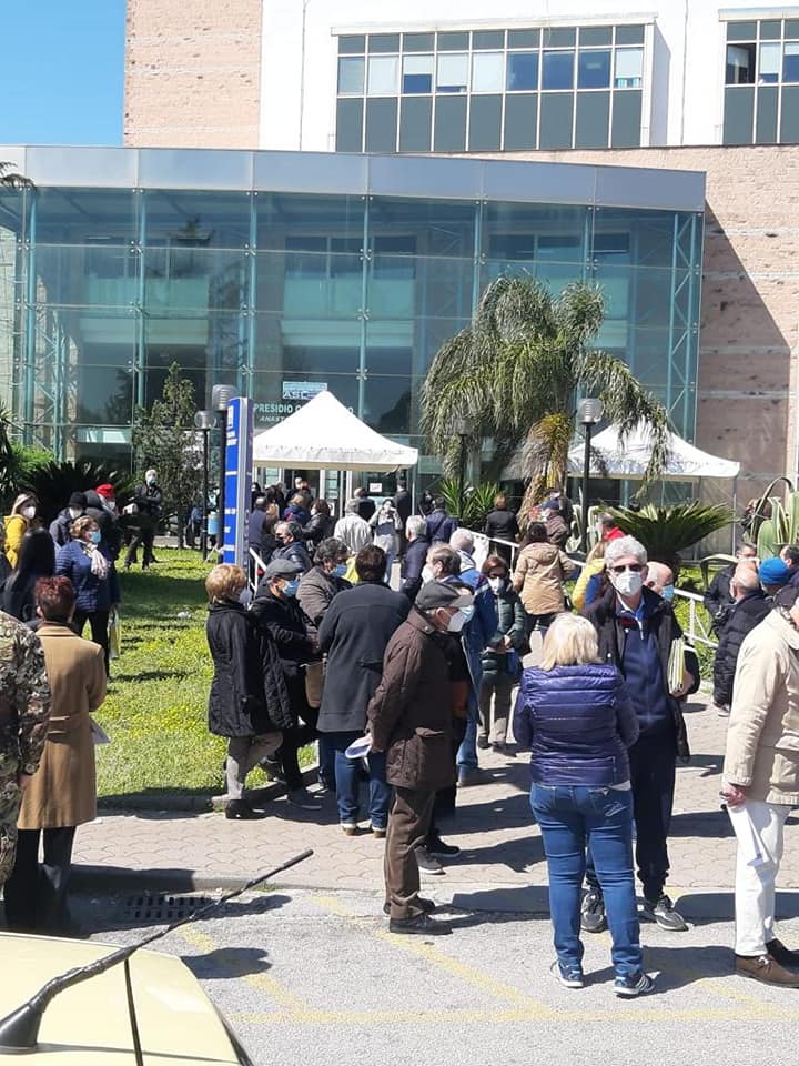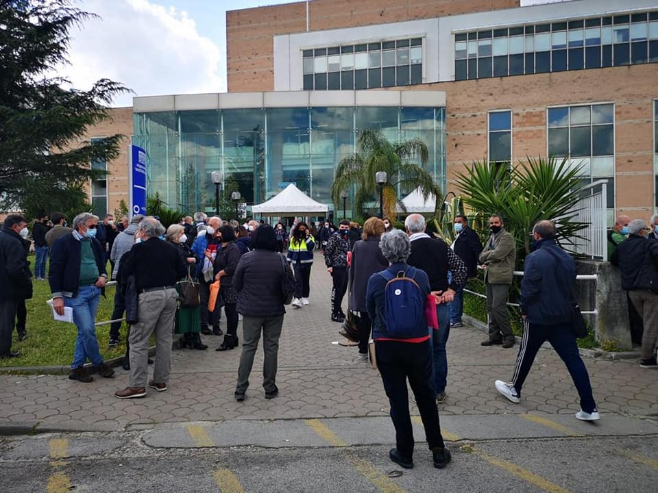 Ciò che sta accadendo lo potete vedere qui sotto, nelle foto che pubblico. C’è grande ressa di persone che stanno andando a vaccinarsi. Si capisce che qualcosa non è andata per il verso giusto, cioè bisognava prevedere questa ressa ed organizzarsi meglio.
