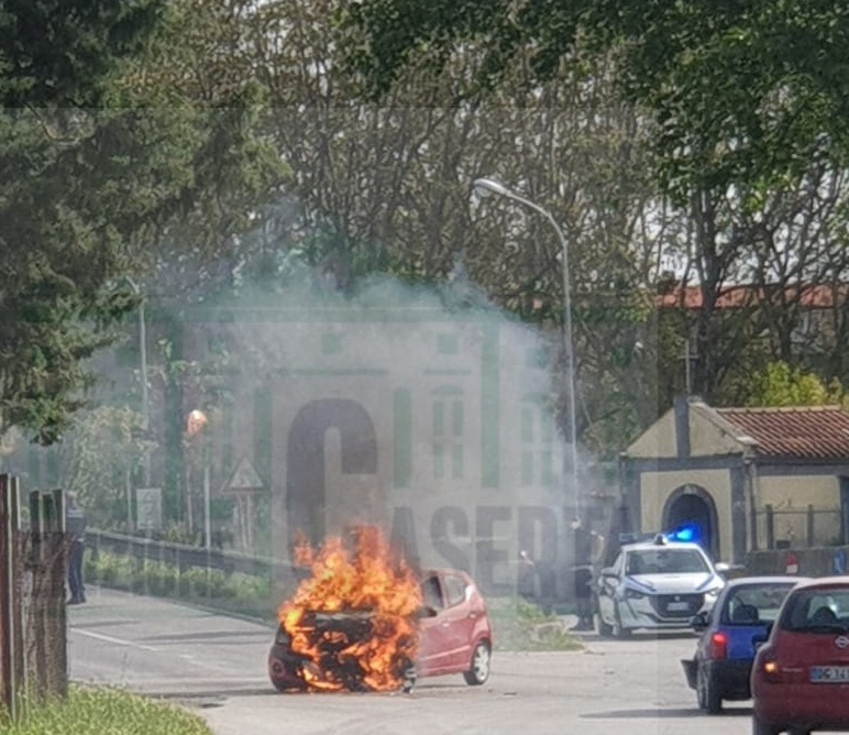 MARCIANISE/CAPODRISE. Paura pochi minuti al cavalcavia del rione Marte al confine tra Capodrise e Marcianise. Un’utilitaria di colore bordeaux ha preso fuoco dopo l’impatto con una Lupo di colore azzurro.