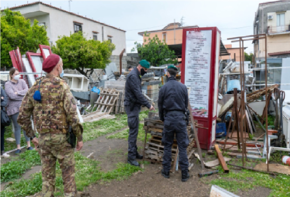 Questa nel dettaglio la composizione degli equipaggi in campo: Raggruppamento Campania dell’Esercito su base 7° Rgt Bersaglieri, Polizia di Stato di Torre Annunziata (Na), Carabinieri di Torre Annunziata (Na), Guardia di Finanza di Torre Annunziata (Na), Polizia Municipale di Torre Annunziata (Na), Guardia di Finanza ROAN di Napoli, Carabinieri Forestali di Castellamare di Stabia, Polizia Metropolitana di Napoli, Polizia di Stato di Castel Volturno (Ce), Guardia di Finanza Territoriale di Mondragone (Ce), Carabinieri Forestali di Castel Volturno (Ce), Carabinieri di Castel Volturno (Ce), Carabinieri di Mondragone (Ce), Polizia Provinciale di Caserta, Polizia Municipale di Castel Volturno (Ce), ASL Caserta. Gestione e smaltimento illecito dei rifiuti e degli scarti delle lavorazioni i reati contestati.