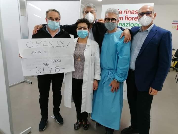 Dalle 14 alle 3 di notte, ora dell’ultima puntura sono state somministrate 2478 dosi. Ben 2478 senza prenotazione hanno ricevuto la prima dose di Astrazeneca e da oggi cominciano – in attesa del richiamo previsto tra poco meno di 3 mesi – l’uscita dal tunnel. E’ stato un happening più che un open day con i corrieri e i rider di pizzerie e ristoranti a consegnare pasti per gli utenti in fila e tanti che sono giunti da tutta la provincia nonostante una comunicazione “bislacca”.
