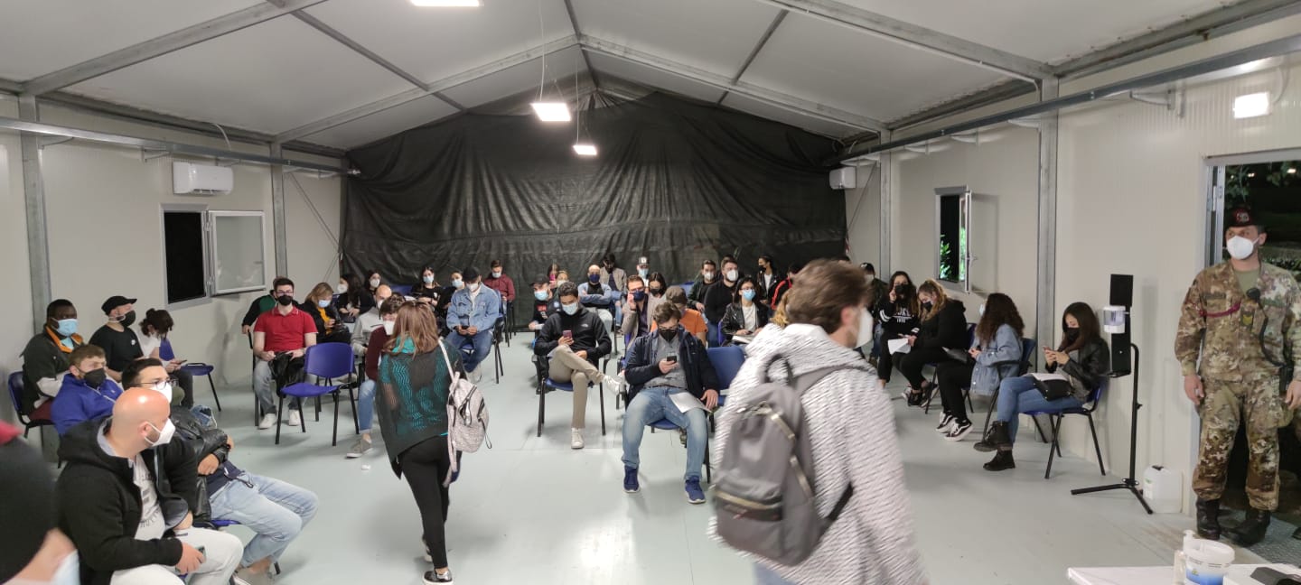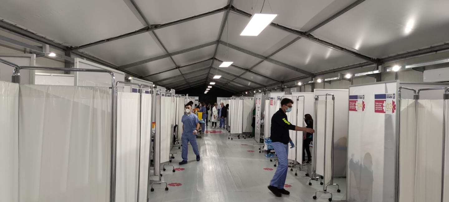 Tutto procede regolarmente con persone disciplinatamente in fila e tempi ristretti (tra i 30 e i 40 minuti di permanenza medi nell’hub compreso il quarto d’ora di stop dopo la dose). Piccolo imprevisto alle 5 del mattino quando per pochi minuti a causa di un blackout anche i frigoriferi con i vaccini sono rimasti privi di corrente; il problema è rientrato però nel giro di pochi minuti.