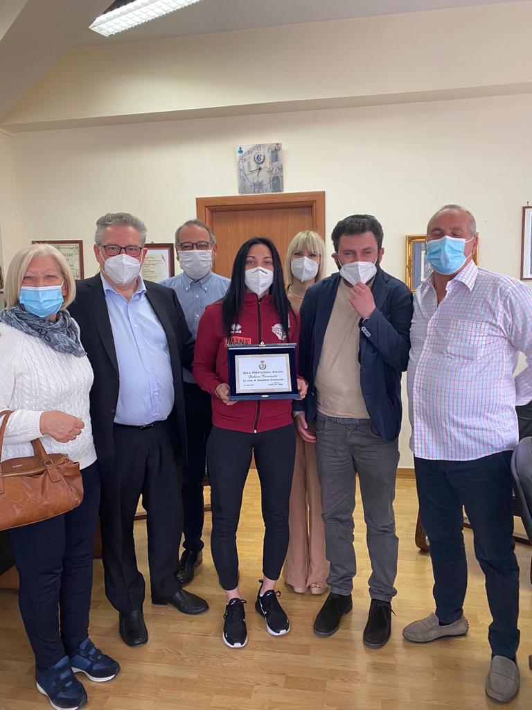 Maddaloni. Stamattina il Sindaco ha accolto, nella sede comunale di via San Francesco D’ Assisi, la giovane e talentuosa atleta Debora Carangelo neo campione d’ Italia con la squadra di basket femminile Umana Reyer Venezia.