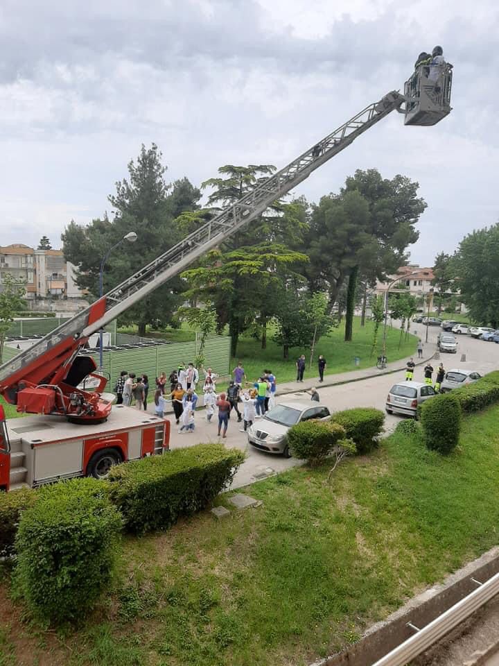 Con l’aiuto del corpo dei vigili del fuoco e la collaborazione dei ragazzi dell’Itis Giordani e l’associazione supereroi in corsia, hanno raggiunto le finestre del reparto di pediatria per portare un saluto ai bambini ricoverati.