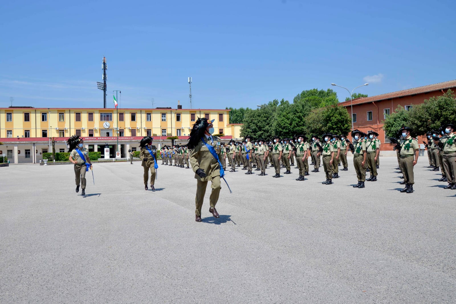 CASERTA, 18 giugno 2021. Oggi, in occasione del 185° anniversario della costituzione del corpo dei Bersaglieri, i “fanti piumati” di Caserta, appartenenti alla Brigata “Garibaldi” dell’Esercito Italiano, hanno celebrato l’evento con la cerimonia dell’alzabandiera e l’esibizione musicale della fanfara in piazza Dante alla presenza del sindaco della città, Dott. Carlo Marino.